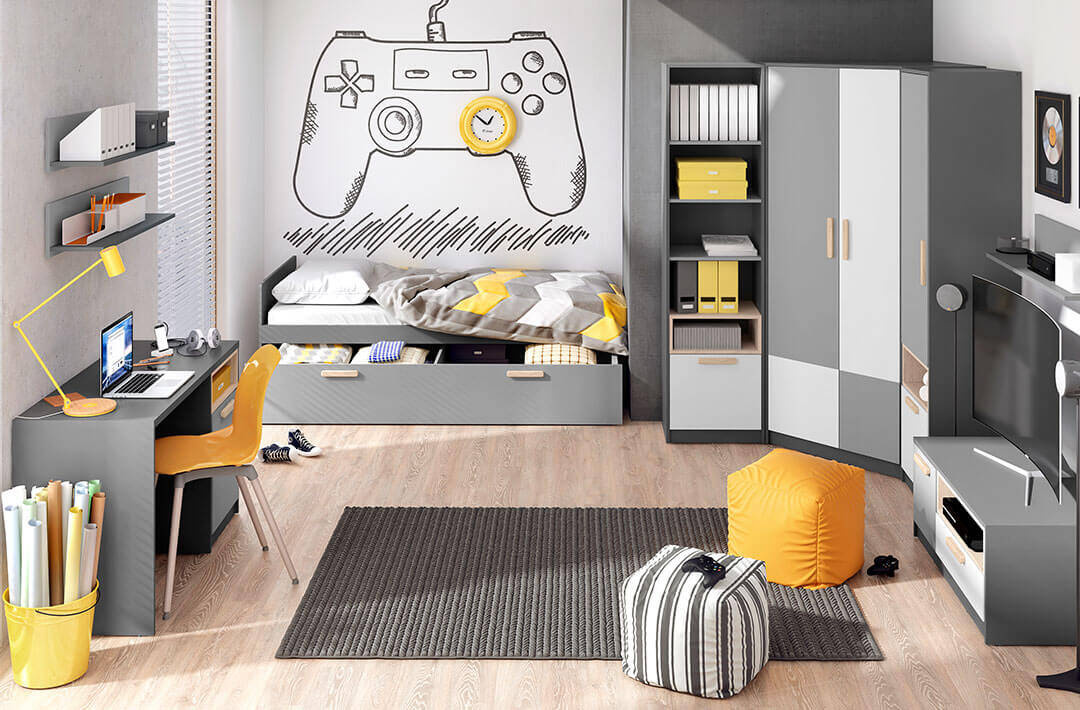 Zachwycająca swą subtelnością i praktycznością szafka POK PO-03 1d1s to mebel, który nie tylko umili przestrzeń sypialni, ale także wniesie nutę nowoczesności do każdego rodzaju wnętrza, w tym pokoju młodzieżowego. Jej uniwersalna paleta barw – grafit, buk ibsen oraz szary jasny i biały, tworzy harmonijne połączenie, które bez trudu dopasuje się do różnorodnych aranżacji. Zaaranżuj swoją przestrzeń z naszą szafą w roli głównej i zatytułuj swoją sypialnię oazą stonowanego stylu i ponadczasowej funkcjonalności.