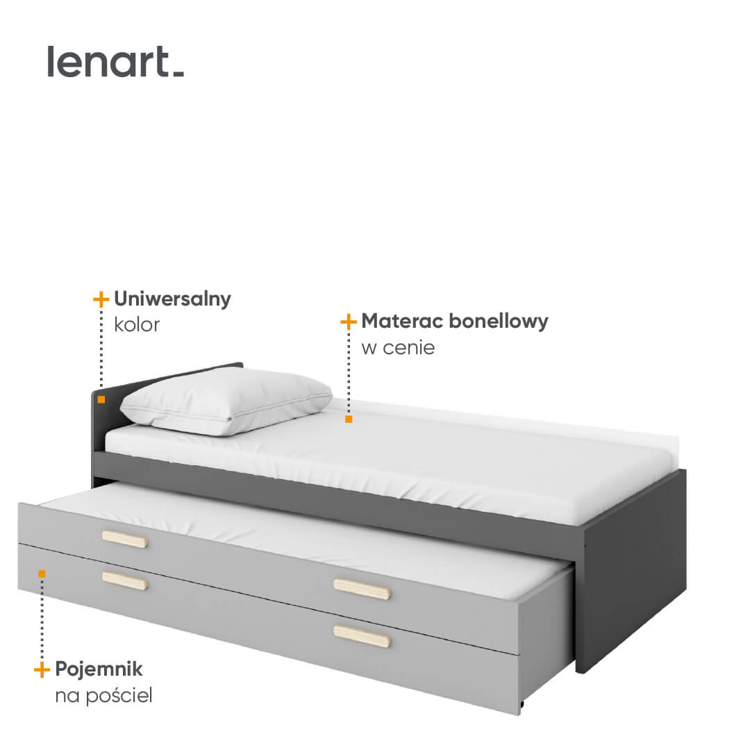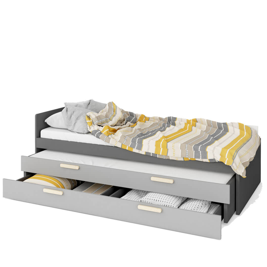 Szuflada PO-13 z materacem piankowym umożliwia wygodne dodatkowe miejsce do spania oraz praktyczny pojemnik na pościel. Nowoczesny design w kolorach grafitu, buku i jasnej szarości łatwo wpasuje się w każde wnętrze.