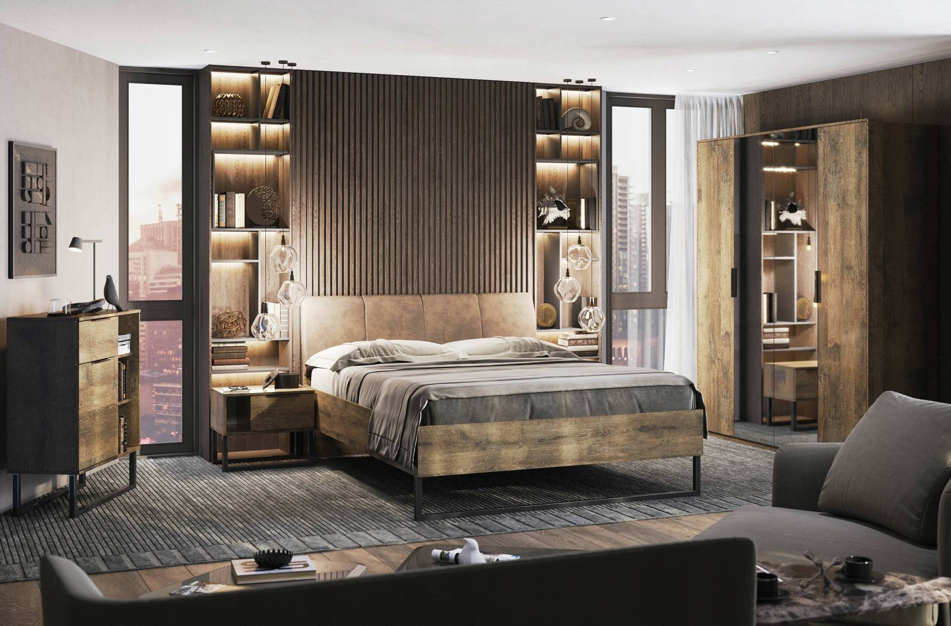 Łóżko Quadro KV-36-OF od MiroMark to esencja stylu loft. Matowe wykończenie w kolorze Dąb Frigate, solidna metalowa rama i miękki zagłówek obity tkaniną imitującą skórę tworzą wyjątkowe, nowoczesne miejsce do spania o wymiarach 160x200 cm.