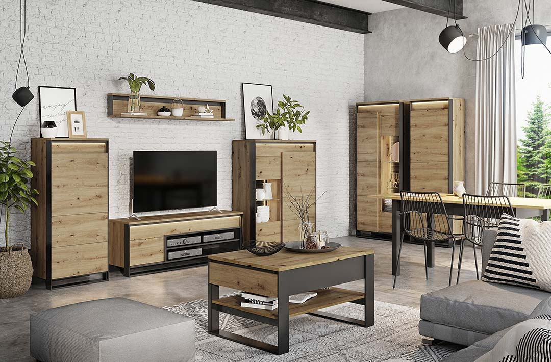 Wykonana z najwyższej jakości płyty wiórowej laminowanej o grubości 16mm półka QA5DAC, jest ucieleśnieniem wytrzymałości. Dzięki zastosowaniu laminatu zarówno w widocznych, jak i niewidocznych częściach mebla, zapewniliśmy mu długą żywotność oraz łatwość w utrzymaniu czystości. Elegancki kolor czarny ściany tylnej kontrastuje z dąbem artisan półki, tworząc interesujący efekt wizualny.