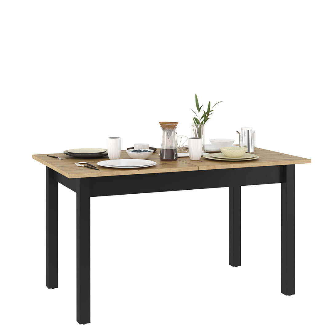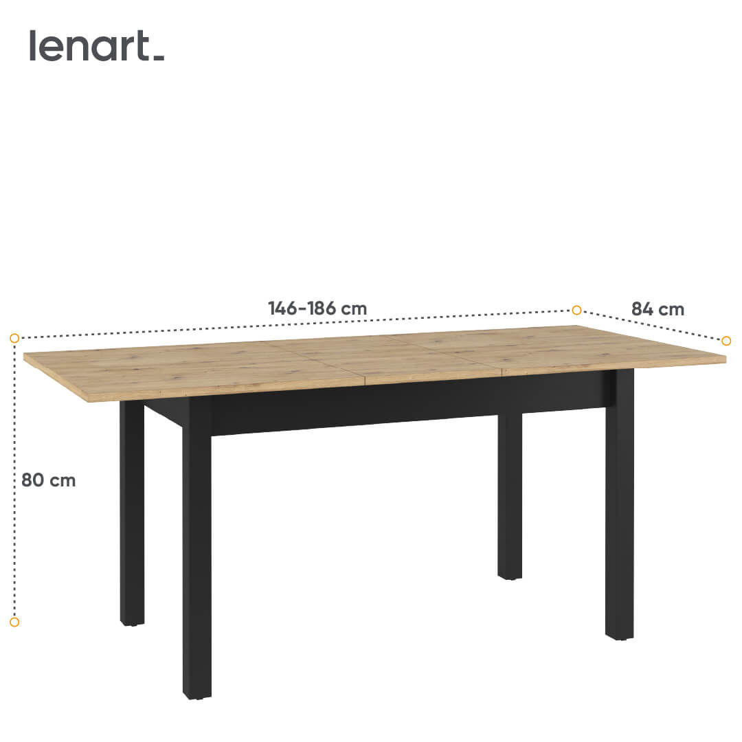 - Nowoczesny stół rozkładany QUANT QA-10 w kolorze dębu artisan z czarnymi, smukłymi nogami. Idealny na codzienne posiłki jak i większe spotkania dzięki funkcji rozkładania do 186 cm.