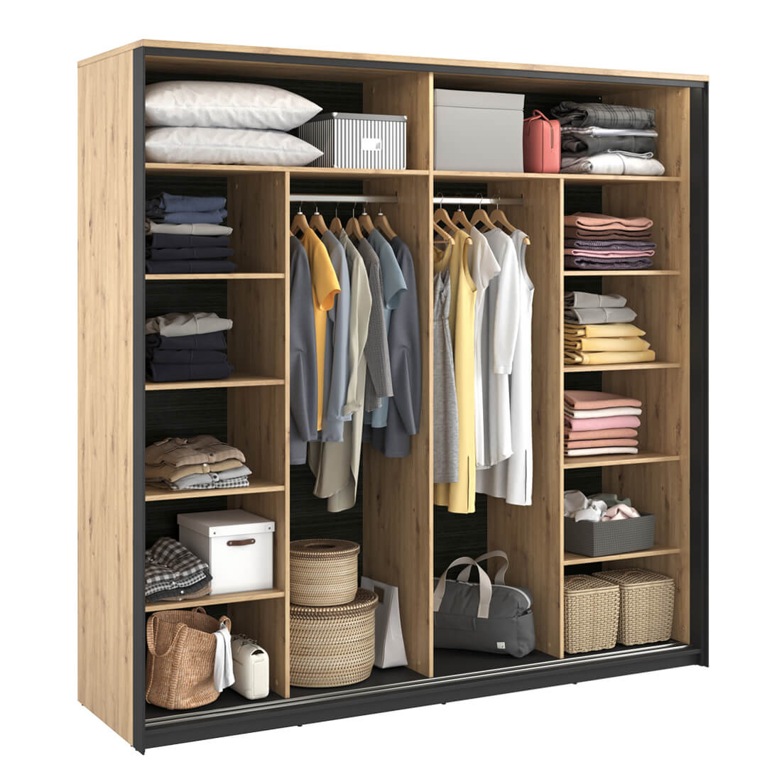 QUANT QS-01 - Szafa Przesuwna 2D Z Oświetleniem Dąb Artisan/Czarna
