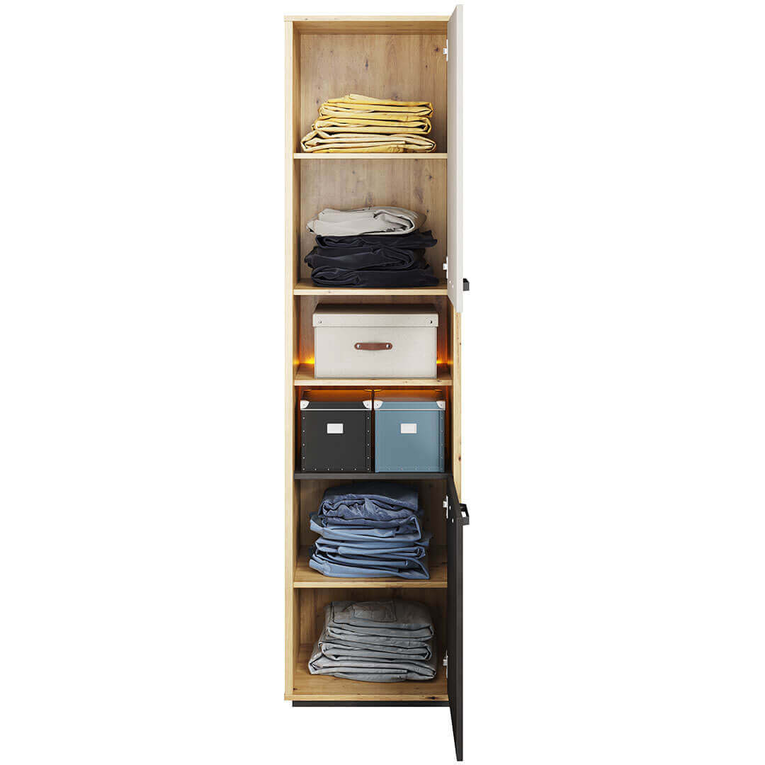 QUBIC QB-04 - Szafka 2-drzwiowa Z Oświetleniem Dąb Artisan/Stal/Silk Flou