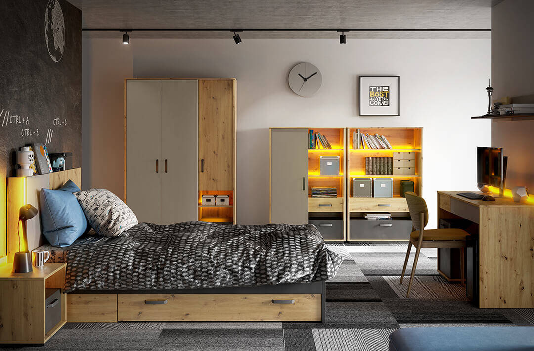 Pod nazwą QB-05 kryje się mebel utrzymany w nowoczesnym stylu, stanowiący odpowiedź na potrzeby miłośników designu, którzy szukają unikalnych rozwiązań do swoich wnętrz. Oferowana szafka wyposażona jest w praktyczny segment 1D2S, czyli jedne drzwi oraz dwie szuflady, które doskonale zorganizują przestrzeń w sypialni, pokoju młodzieżowym lub nawet nowoczesnym biurze.