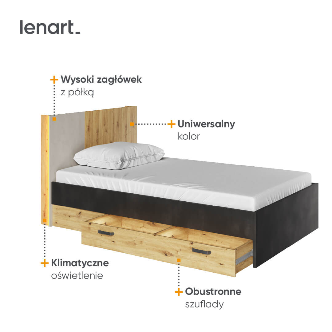 Nazwa produktu: QUBIC QB-11 - łóżko 120 2s ze stelażem z oświetleniem