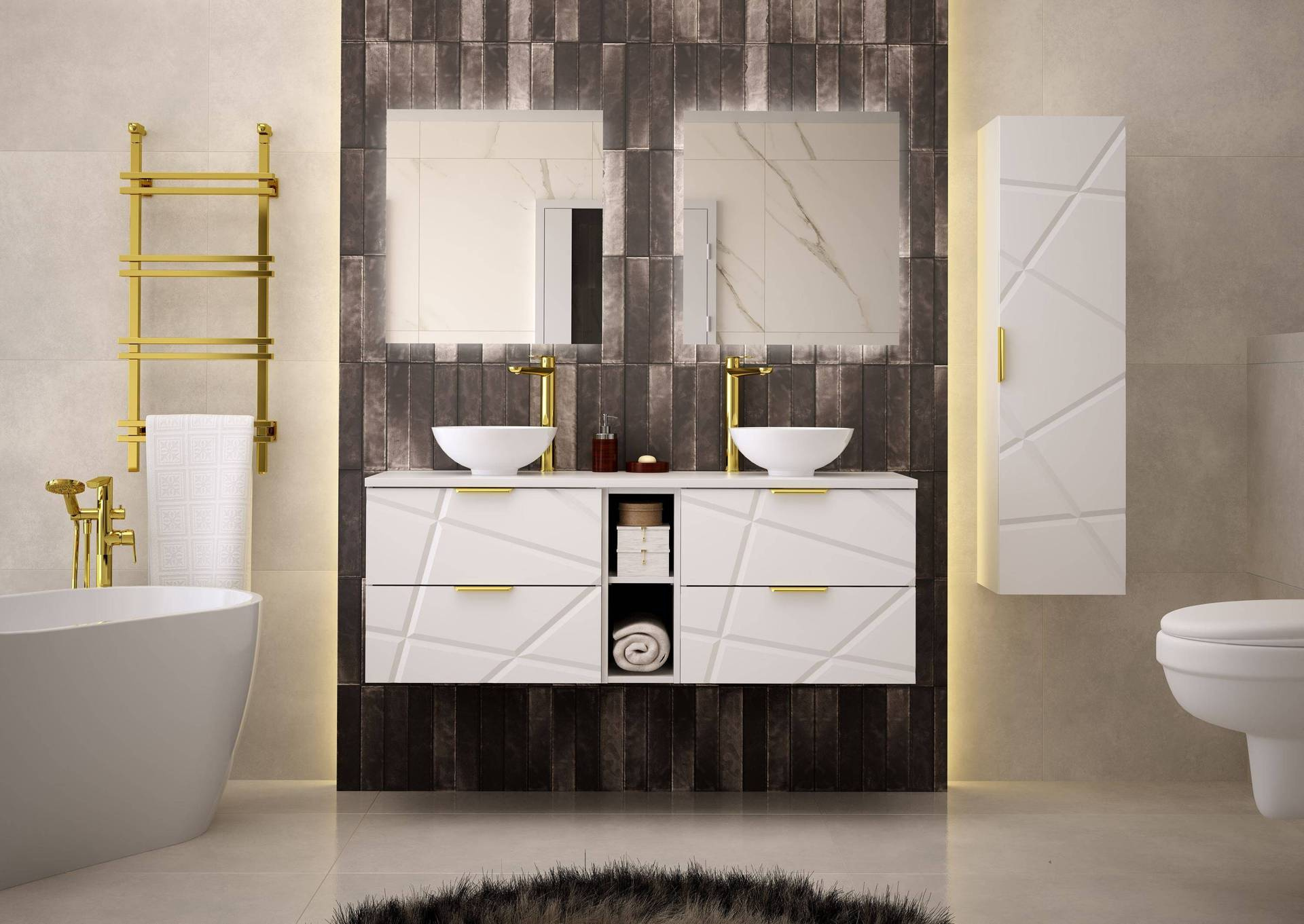 Szafka pod umywalkę Megstyl w białym macie to elegancja i funkcjonalność w jednym. Wykonana z MDF, z metalowymi uchwytami w złotym odcieniu. Ciche domykanie szuflad zwiększa komfort użytkowania. Idealna do nowoczesnych łazienek.
