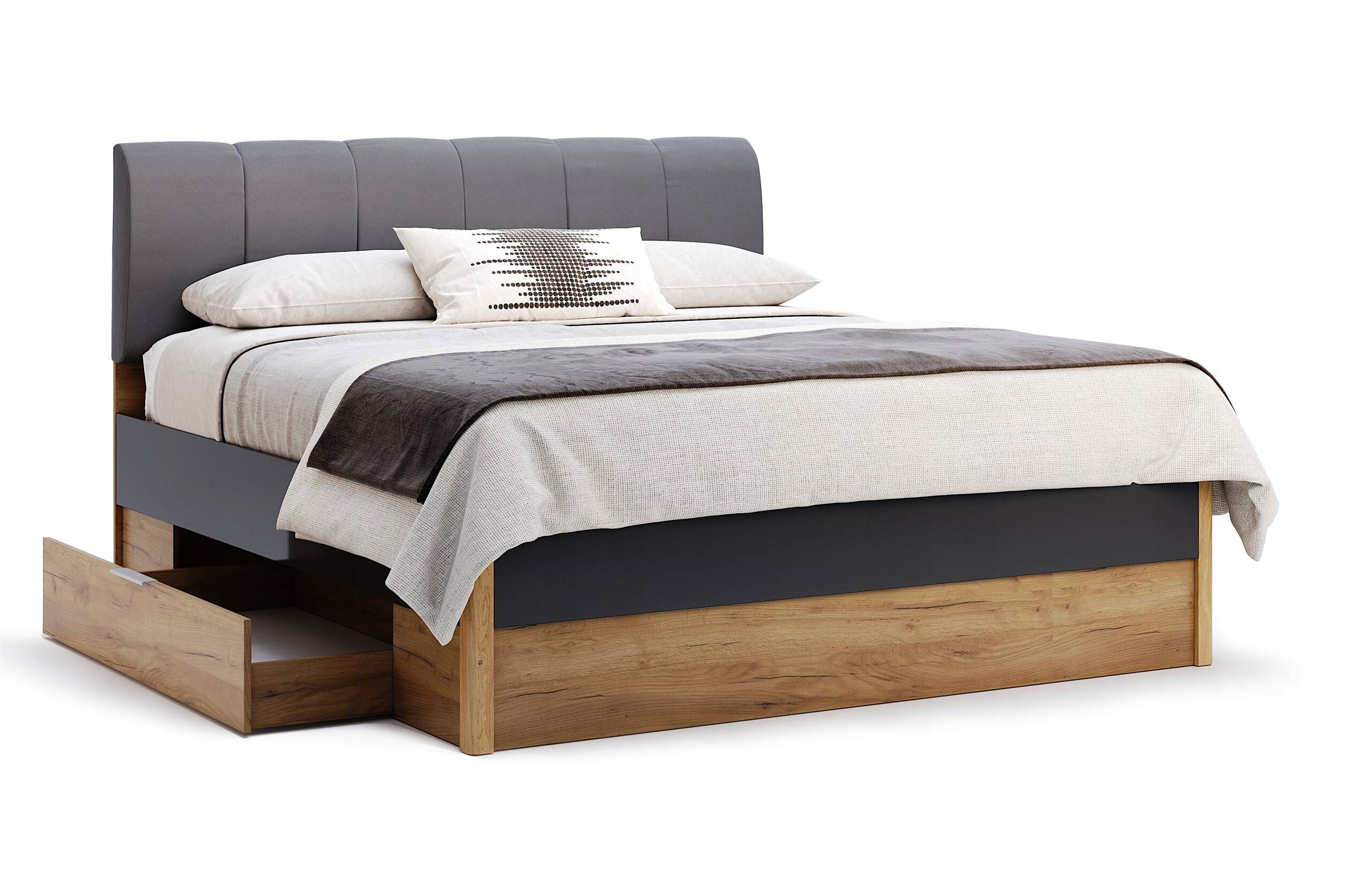 Ramona RA-36-LV - Łóżko z Zagłówkiem 2 Szuflady Dąb Craft Lava Mat 160x200 cm