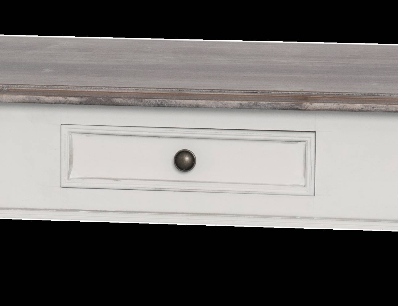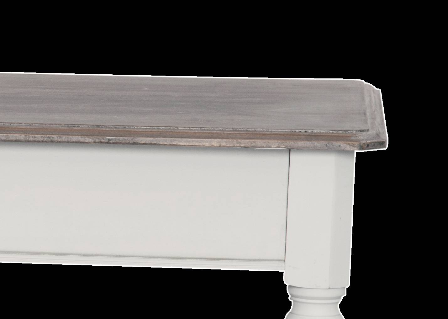 Wybierając stół Ravenna, możesz być pewien oczekiwanego efektu. Piękno sielskiego designu tego niezwykłego mebla prezentuje się w jadalni niezwykle efektownie. Smukłe, białe toczone nogi, które podpierają typowy dla serii Ravena bielony blat w kolorze brązowym to charakterystyczne akcenty dla rustykalnego i prowansalskiego stylu. Zwróć uwagę na ukrytą w stelażu stołu szufladkę - to detal, który podkreśla wartość mebla i kunszt wykonania.