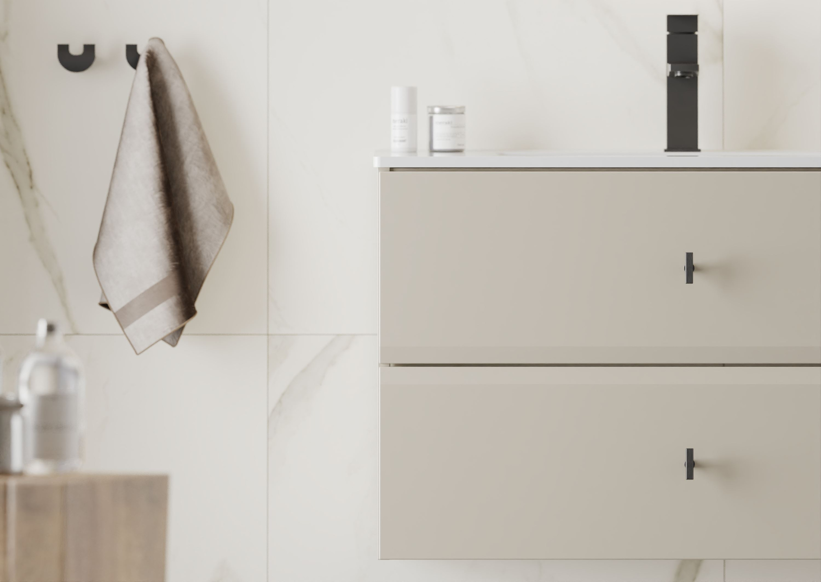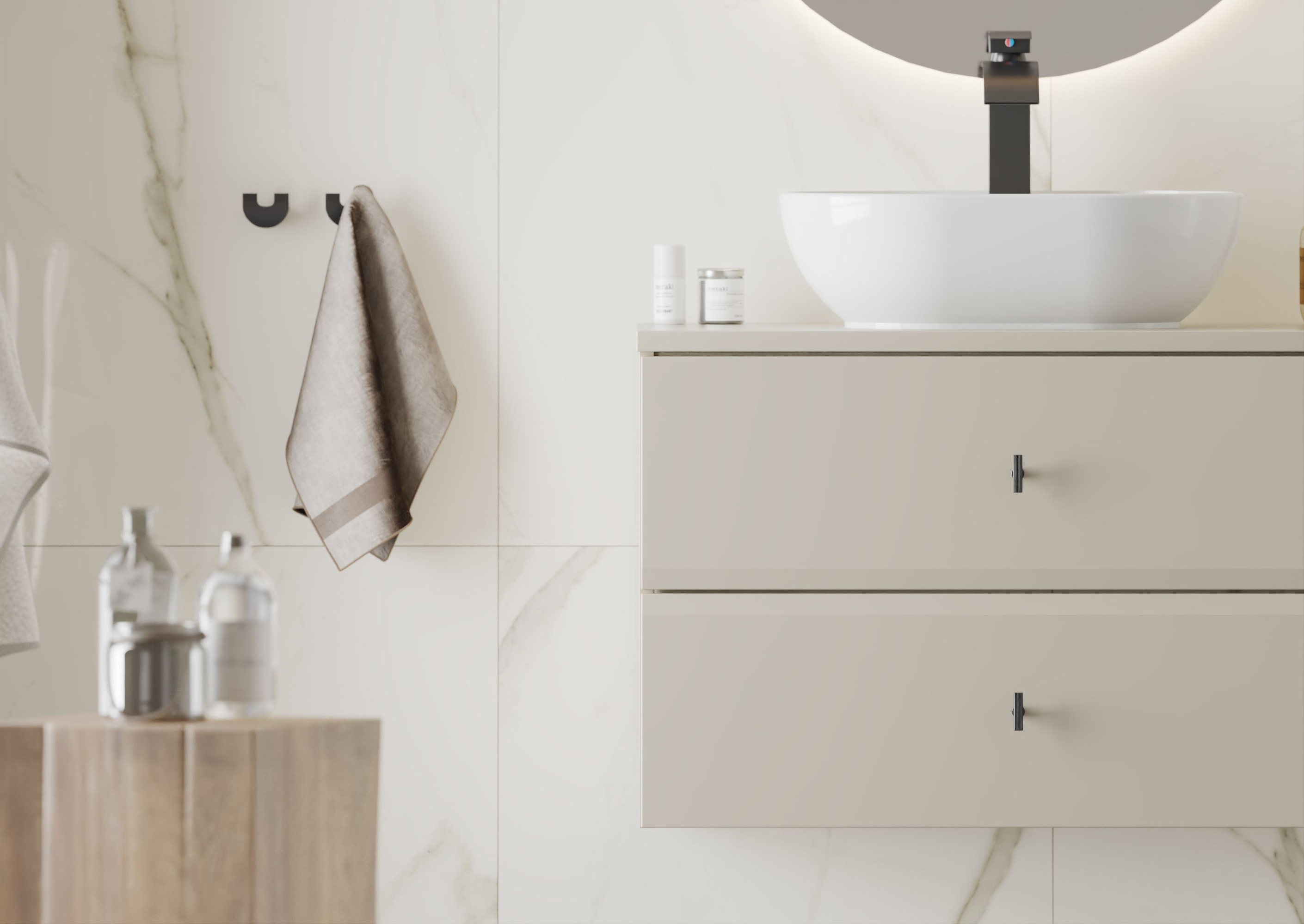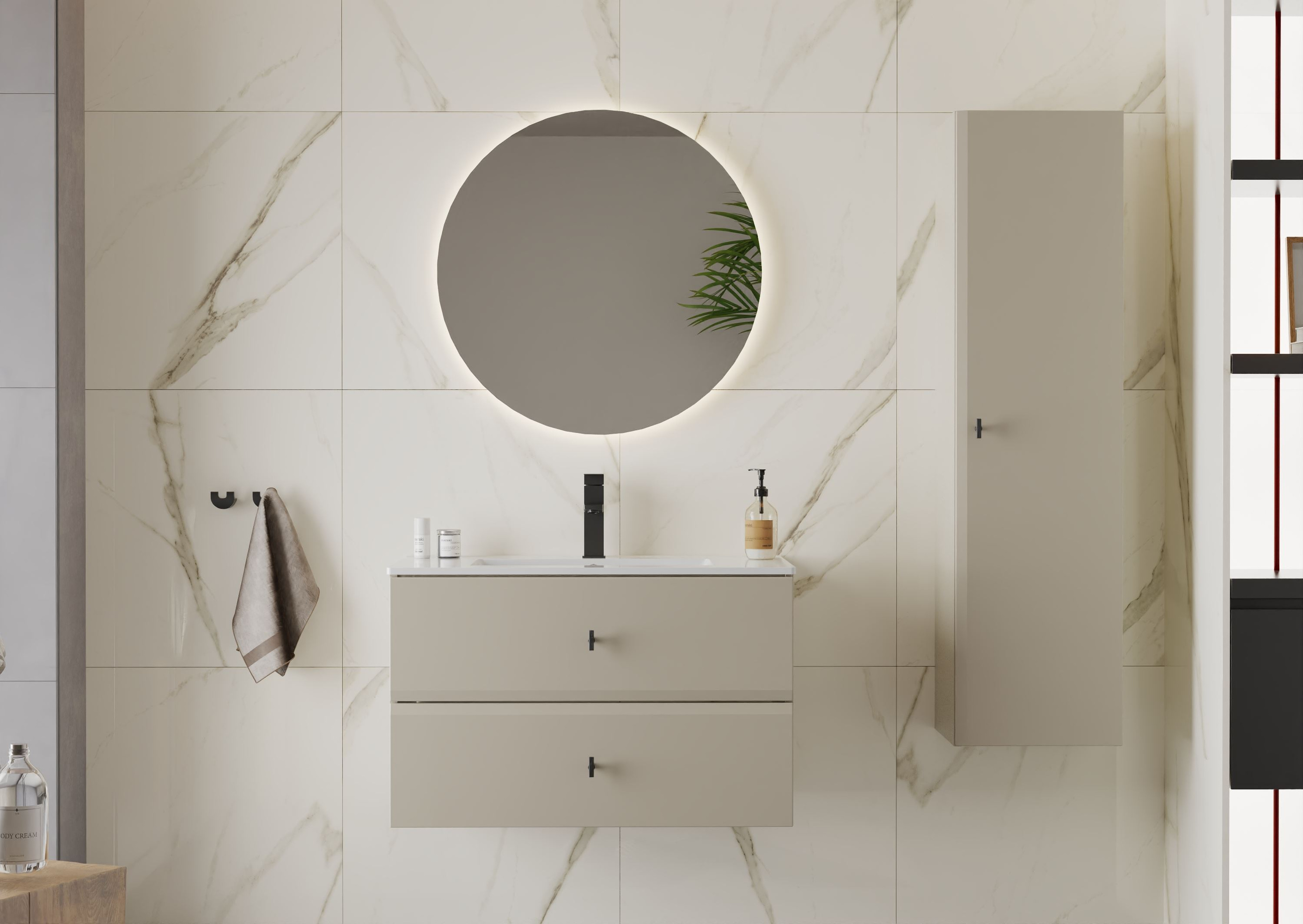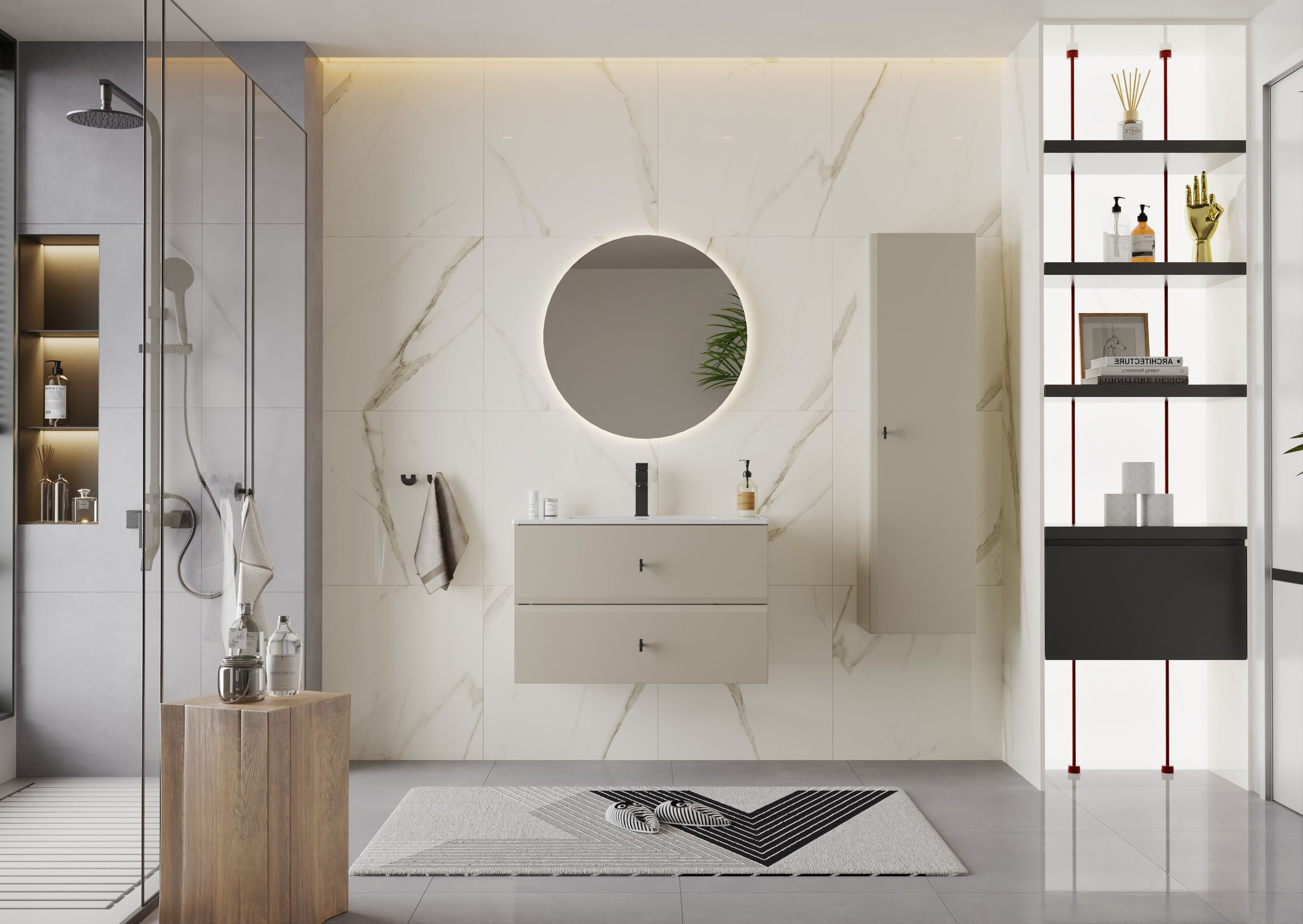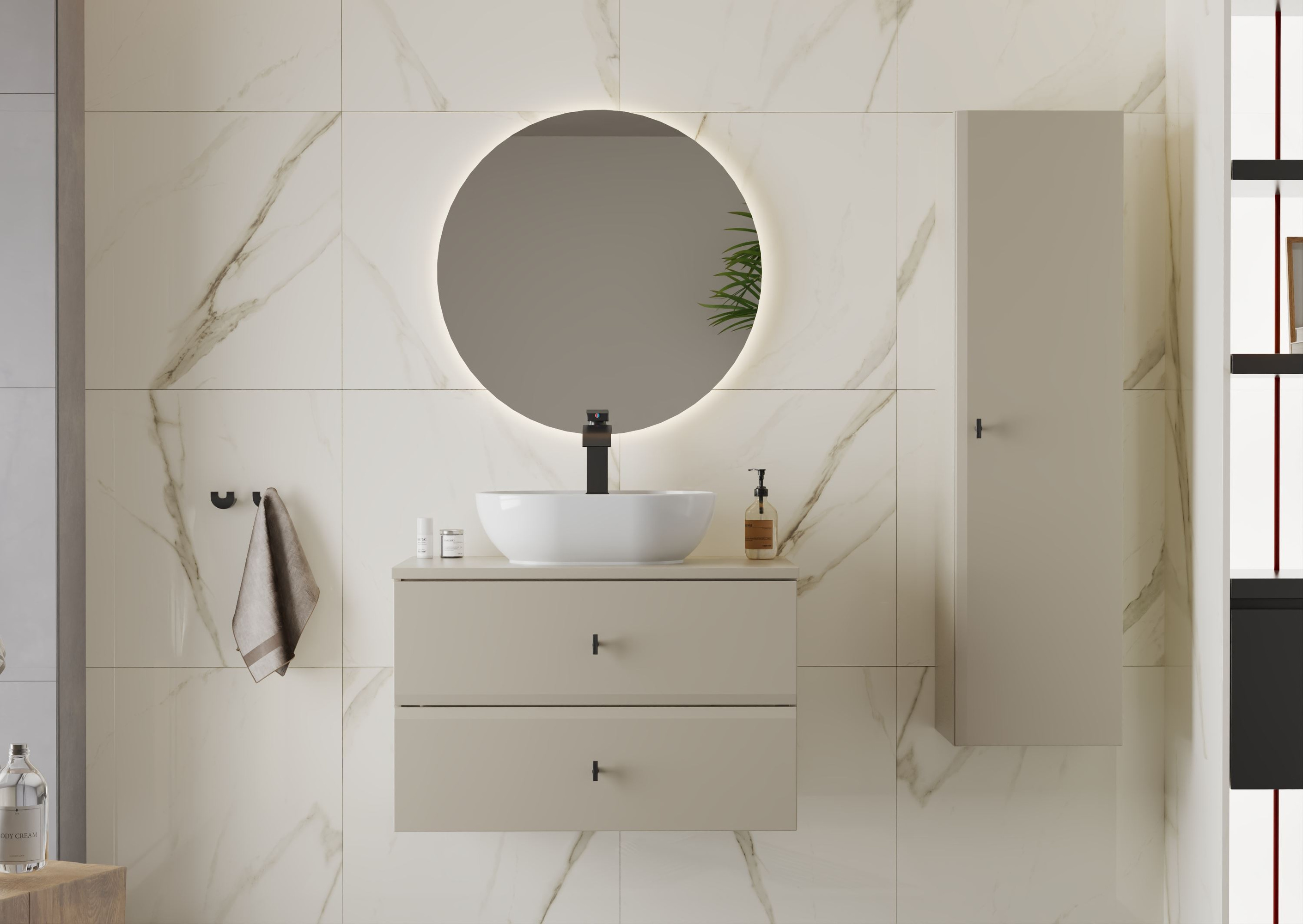 Szafka pod Umywalkę RAY-01 to idealne połączenie stylu i funkcjonalności, które doda elegancji każdemu wnętrzu łazienkowemu. Jej minimalistyczna forma w kolorze kaszmirowym w matowym wykończeniu emanuje spokojem i nowoczesnością, tworząc przestrzeń sprzyjającą relaksowi. Szafka o szerokości 80 cm z powodzeniem wpisuje się w różnorodne aranżacje, stając się efektownym elementem wyposażenia łazienki.
