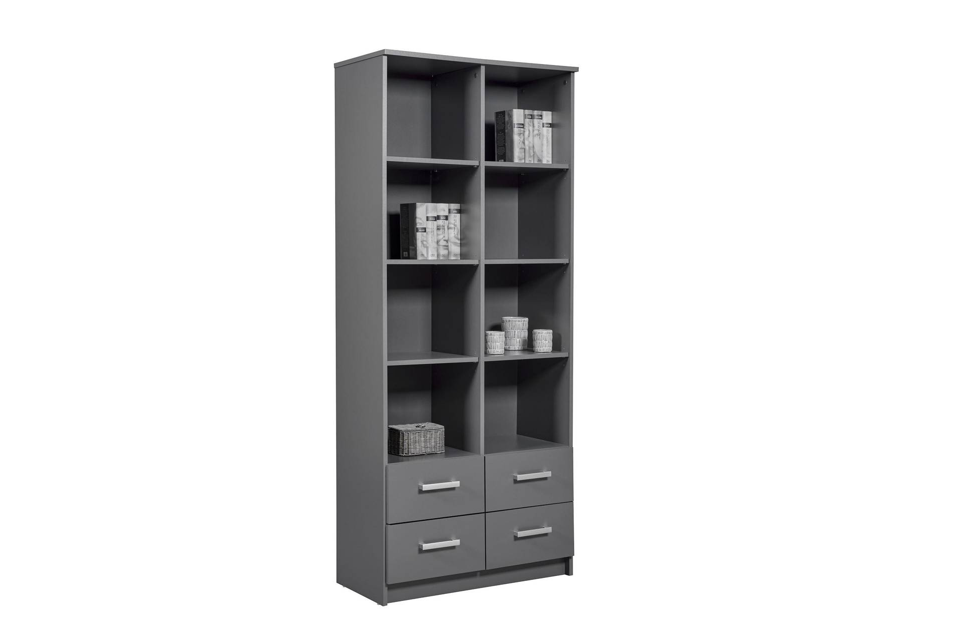 - Regał stojący ze sporym miejscem do przechowywania, eksponowania książek czy dekoracji i czterema szufladami na płynnie poruszających się metalowych szynach. Półki są wodoodporne i łatwe do czyszczenia.