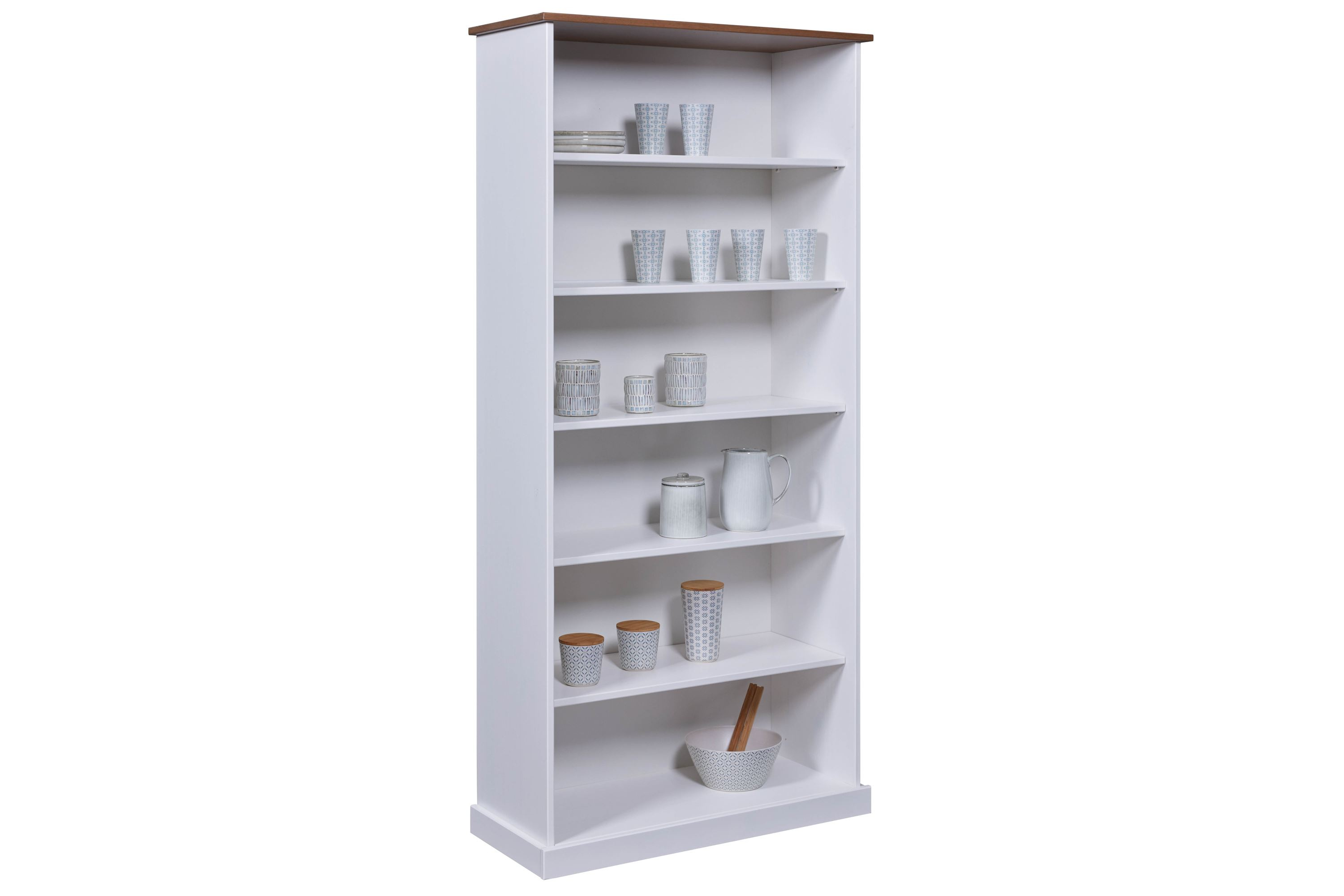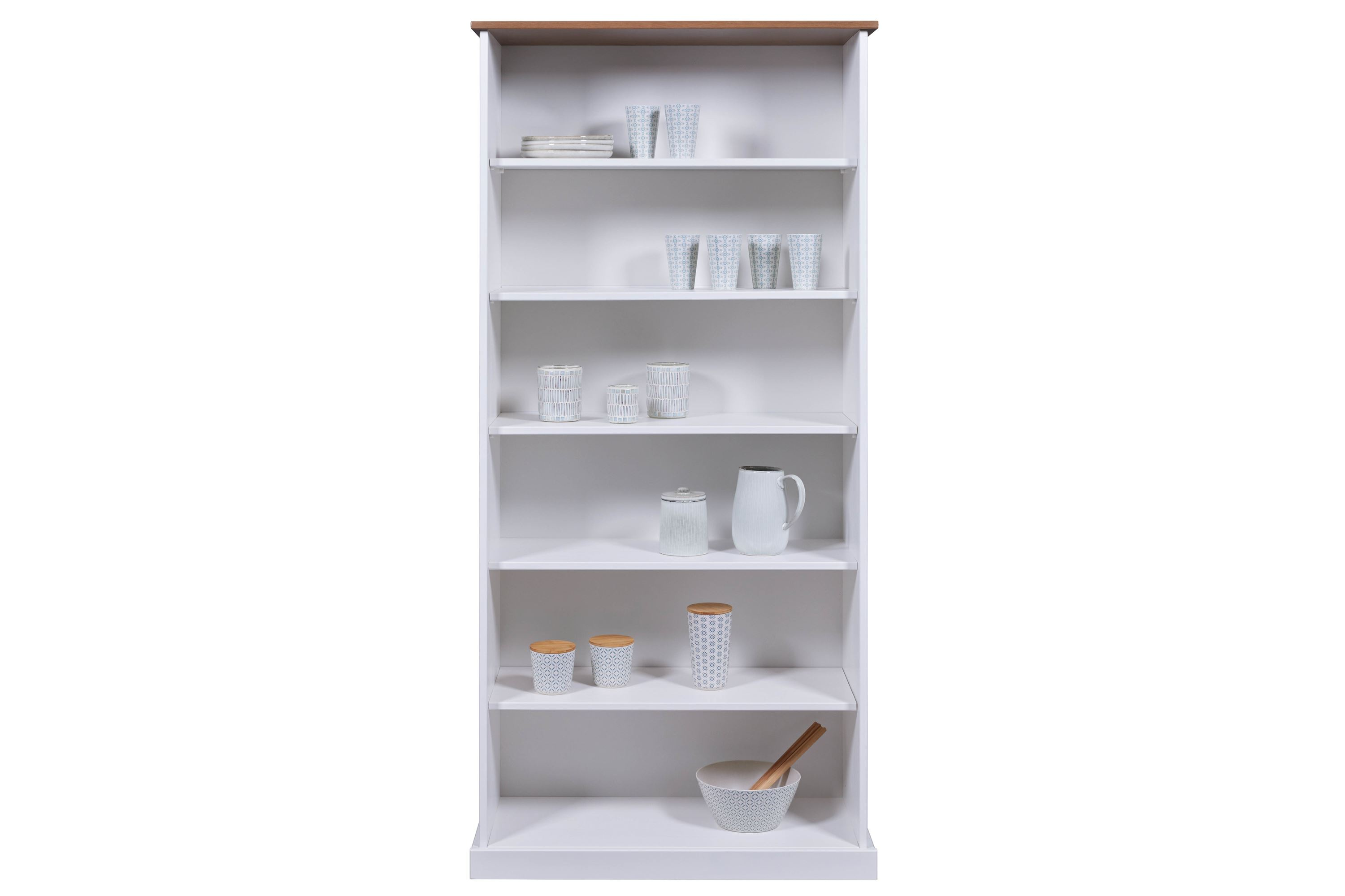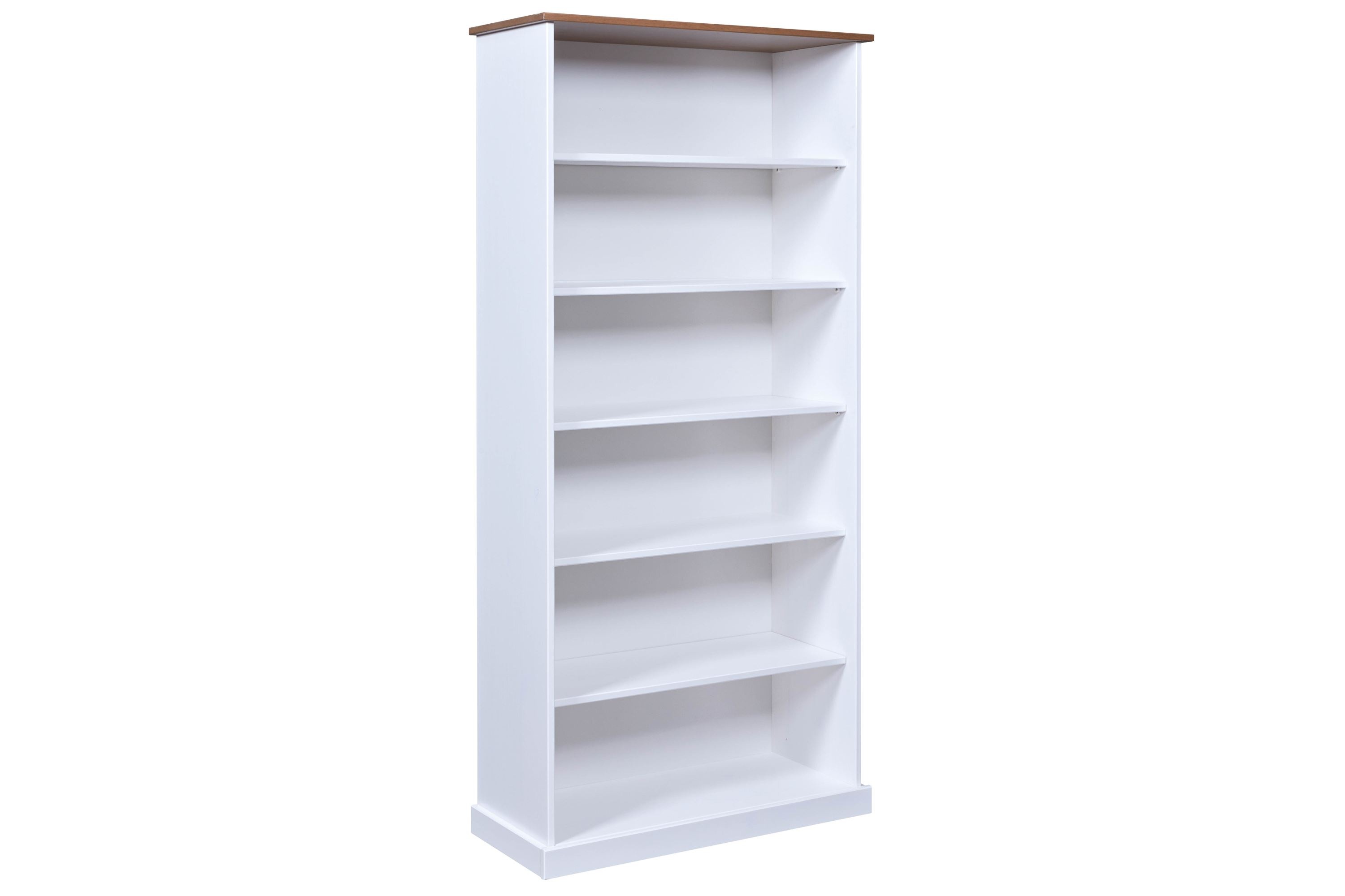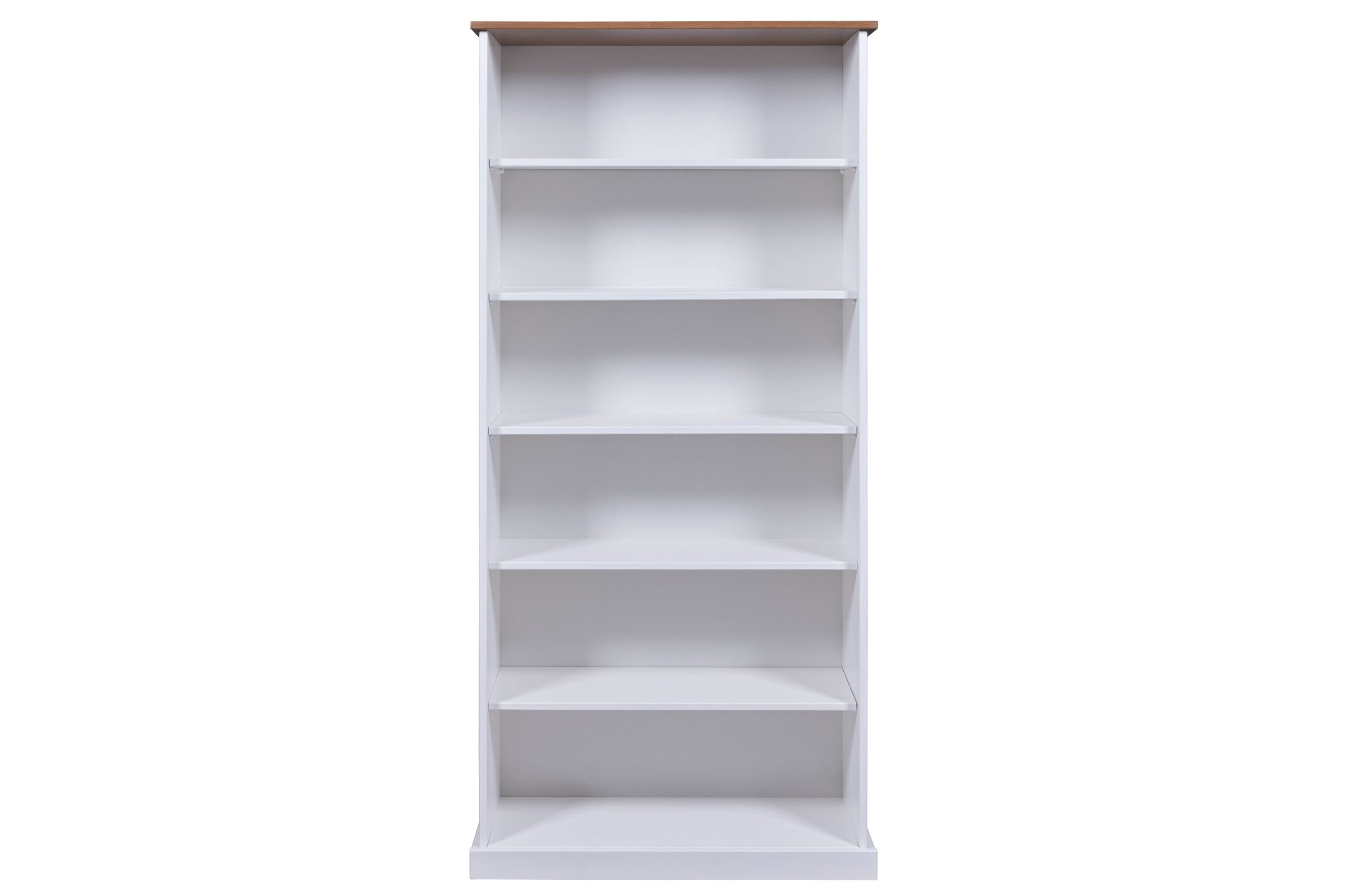 • Regał z drewna sosnowego o szerokości 90 cm z pięcioma półkami do przechowywania książek, ramek na zdjęcia i najróżniejszych dekoracji. Regał w kolorze białym w stylu nowoczesnym, skandynawskim.
