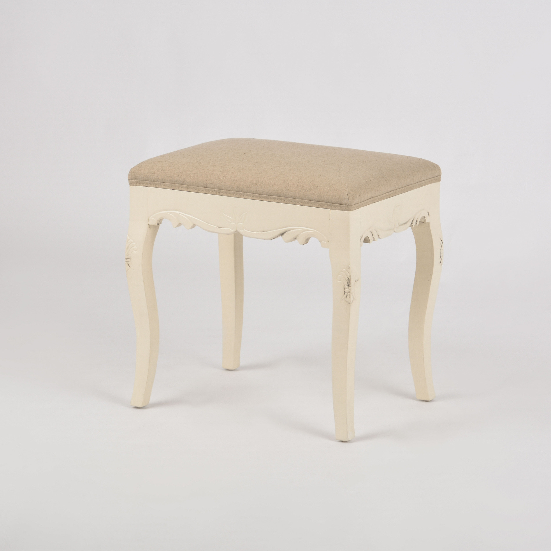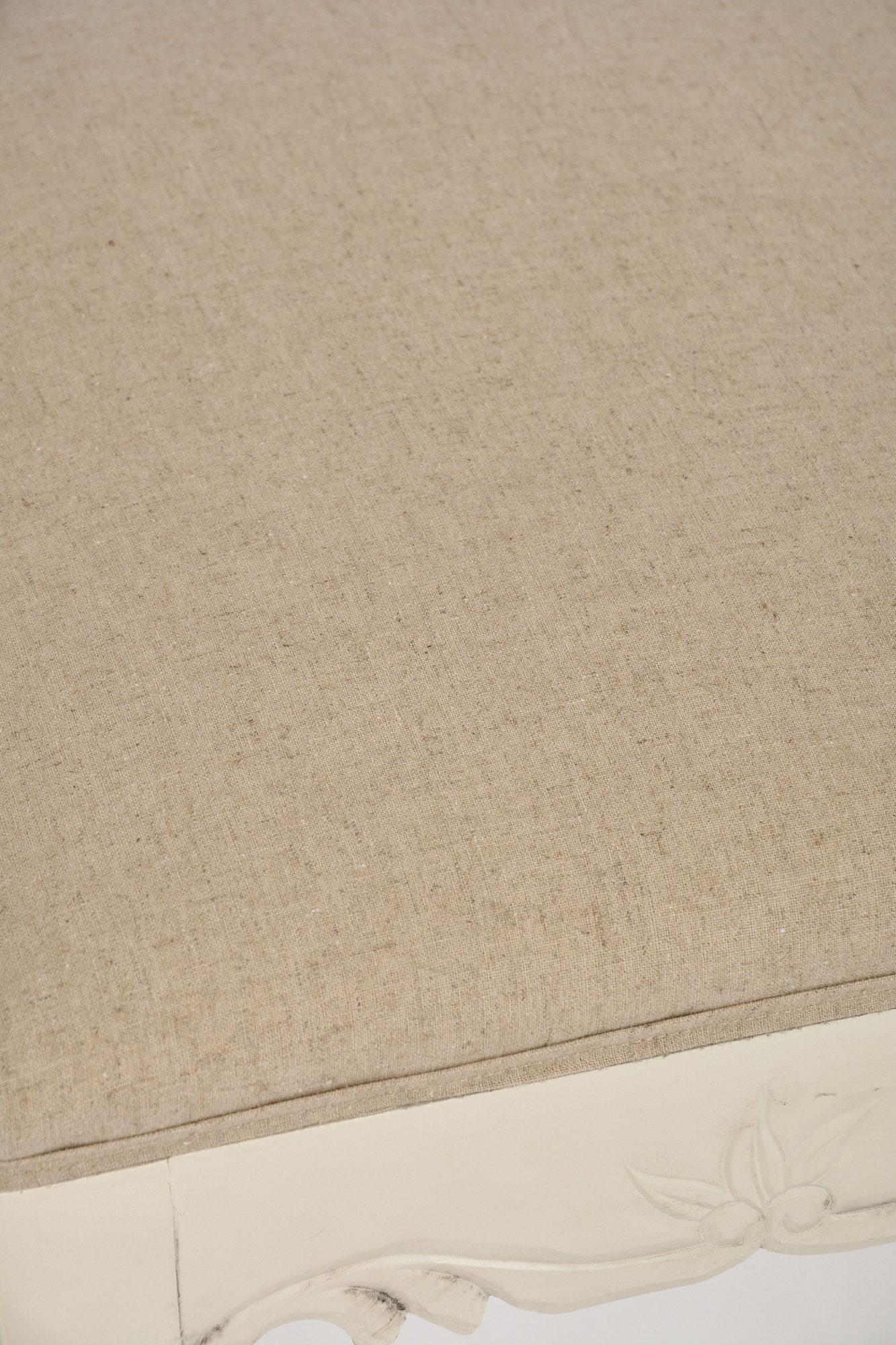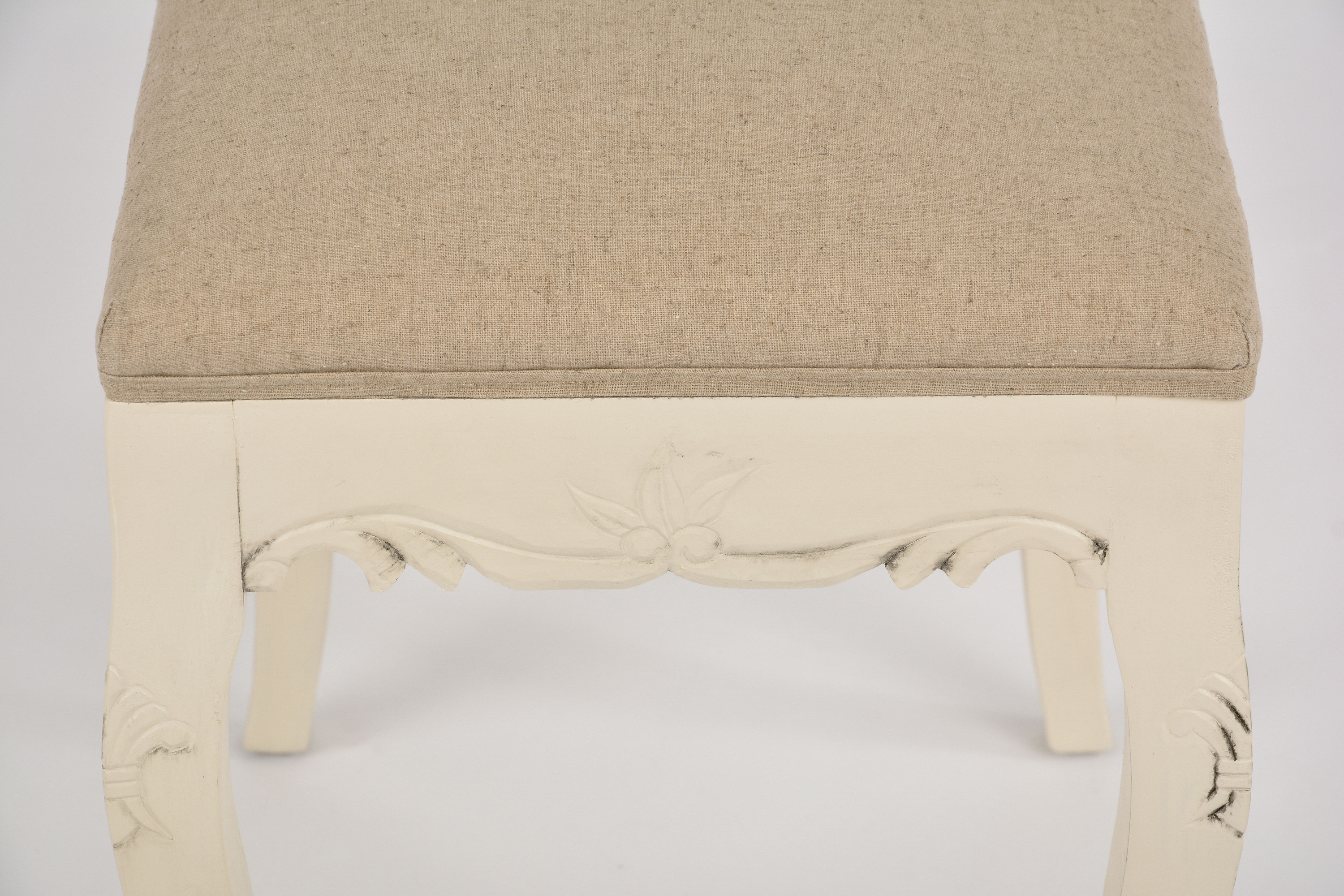 Siedzisko Rimini 046 to wyjątkowy, piękny mebel, który idealnie wpisuje się w styl francuski. Kremowa kolorystyka drewnianej podstawy i tapicerowanego siedziska przywodzi na myśl słoneczną i sielską Prowansję. Drewno jest ładnie tłoczone i rzeźbione, co sprawia, że wygląda bardzo dekoracyjnie. Siedzisko można postawić przy konsoli czy sekretarzyku lub wykorzystać jak stolik – wystarczy położyć tacę.