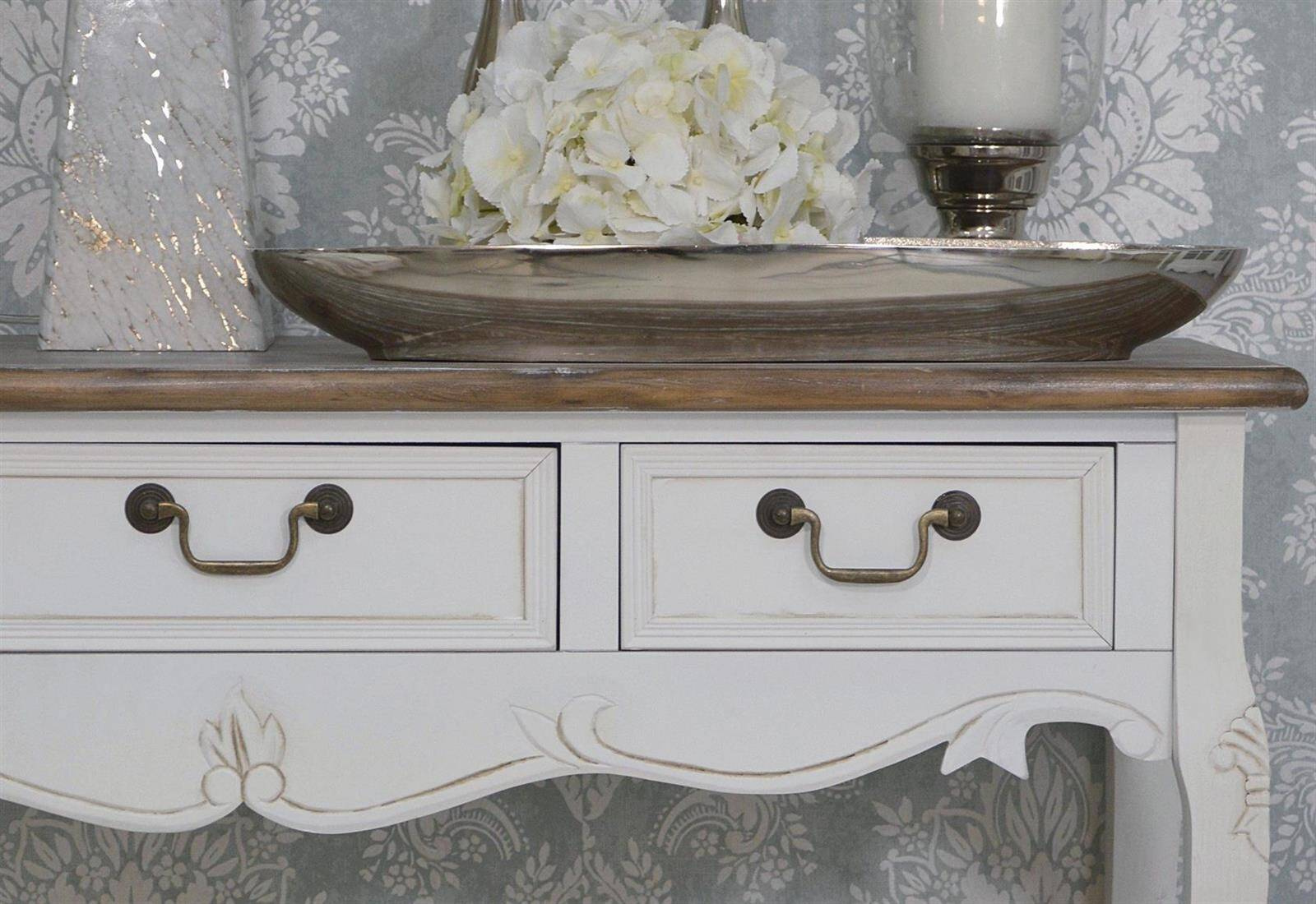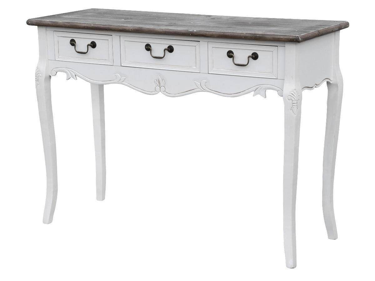 Rimini White 017 Konsola 3S prowansalska biała z przecieranym brązowym blatem drewno/mdf