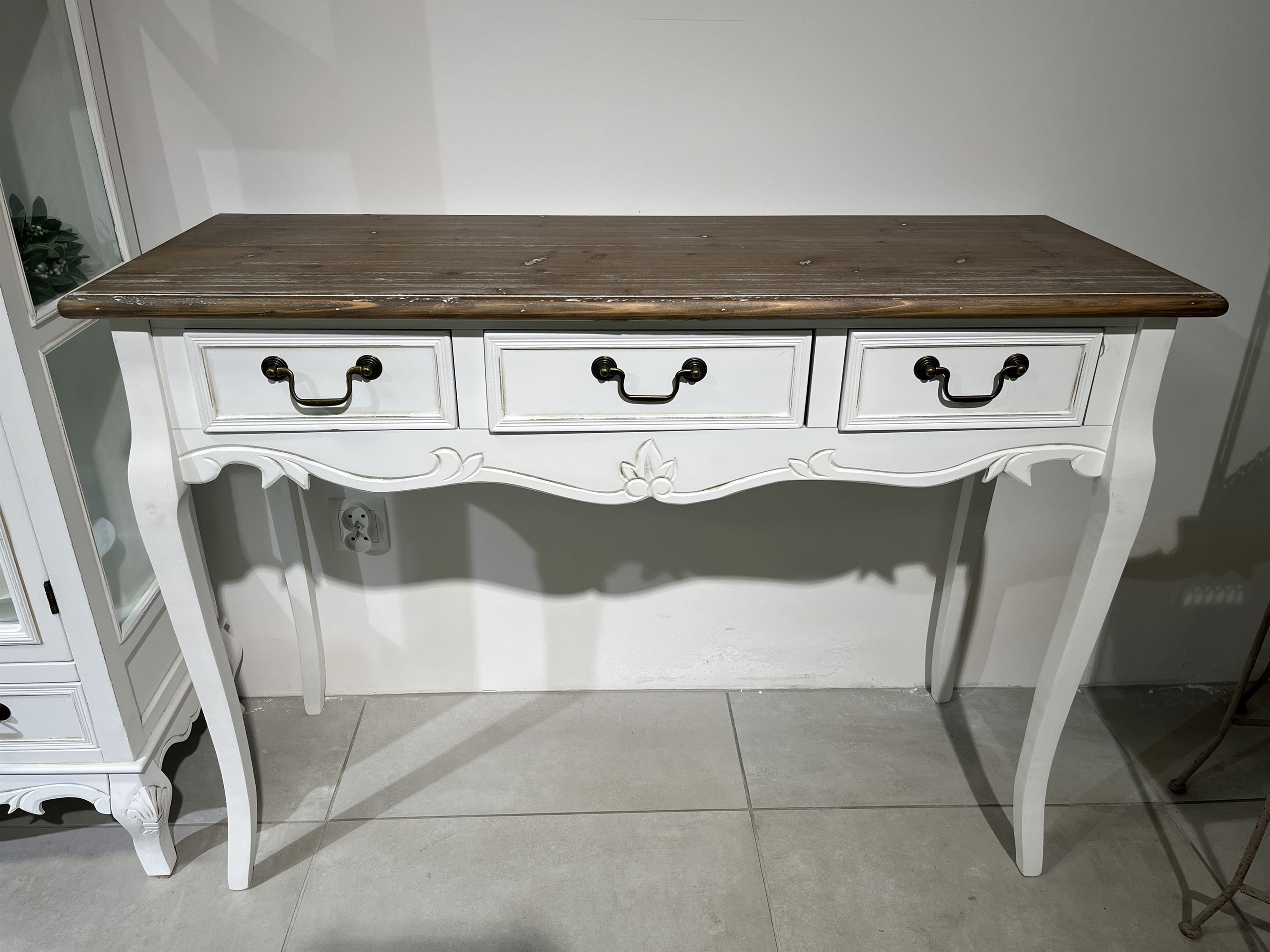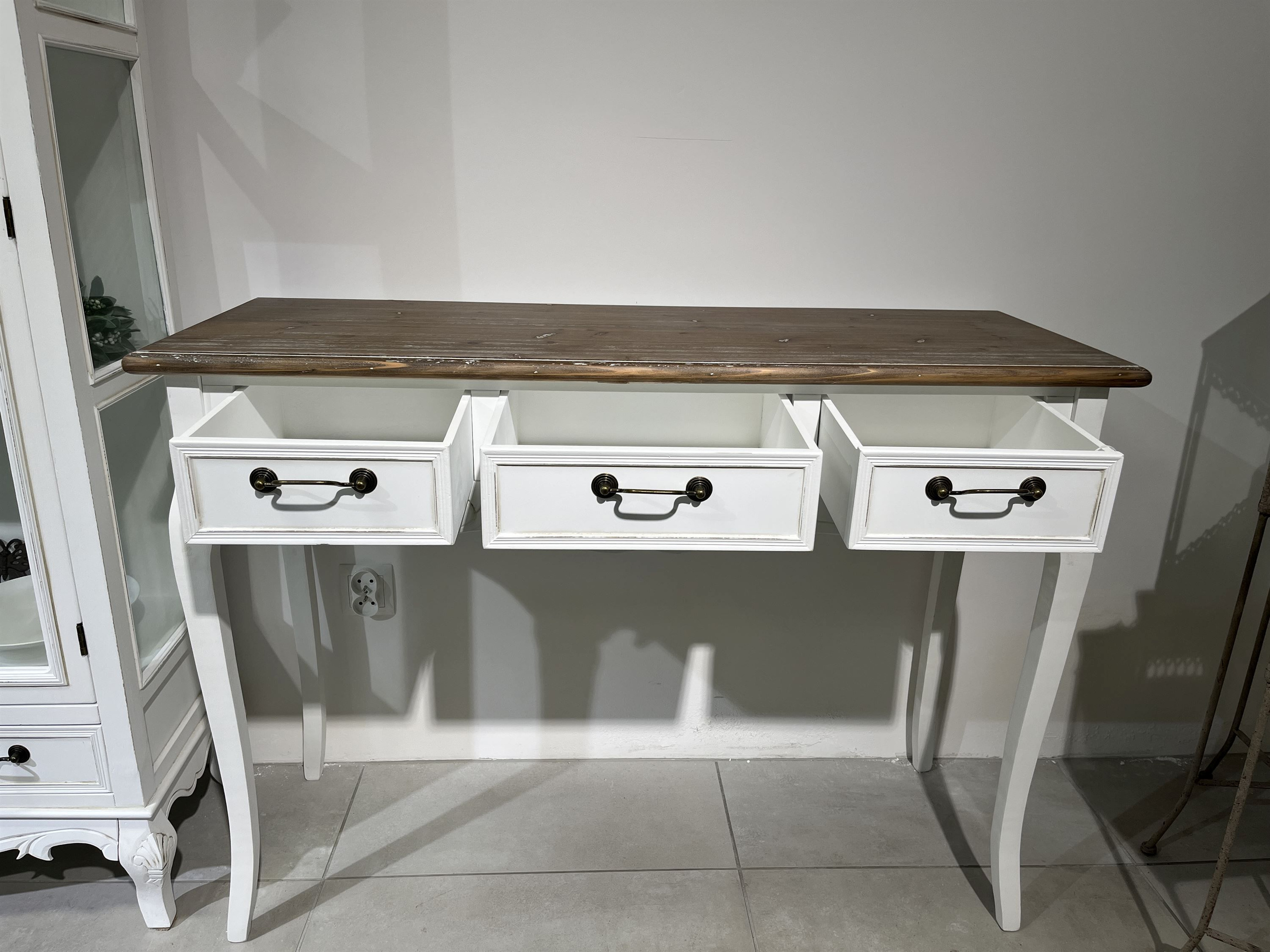 Rimini White 017 Konsola 3S prowansalska biała z przecieranym brązowym blatem drewno/mdf_01