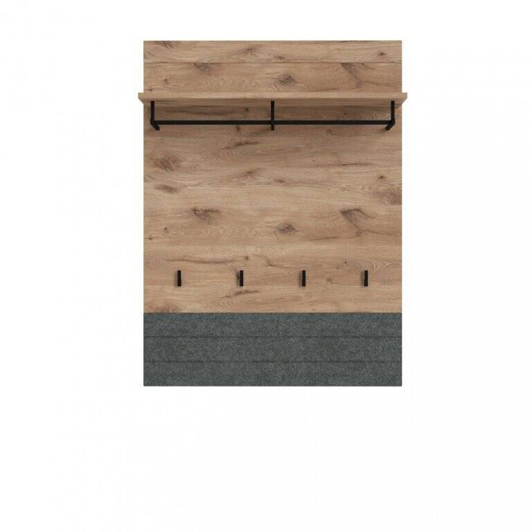 - Panel ścienny Roxy z funkcją wieszaka: wyposażony w półkę, drążek i haczyki. Elegancki, w kolorze Dębu Viking, uzupełni nowoczesne oraz loftowe wnętrza.
