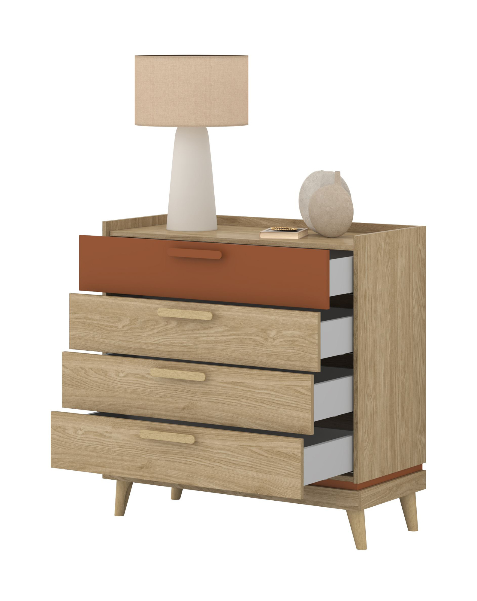 Scandi - Komoda 4S Dąb Olejowany Ceglany