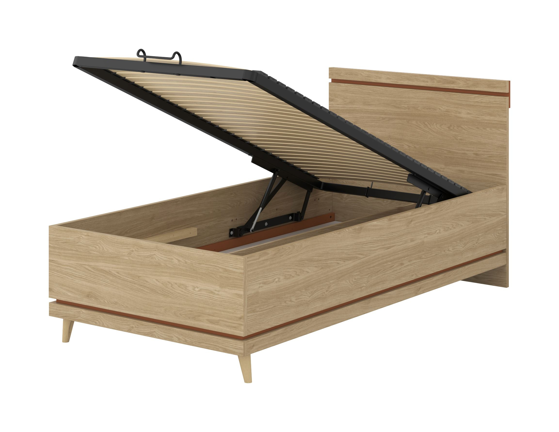Scandi - Łóżko 100x200 cm ze Stelażem Dąb Olejowany Ceglany