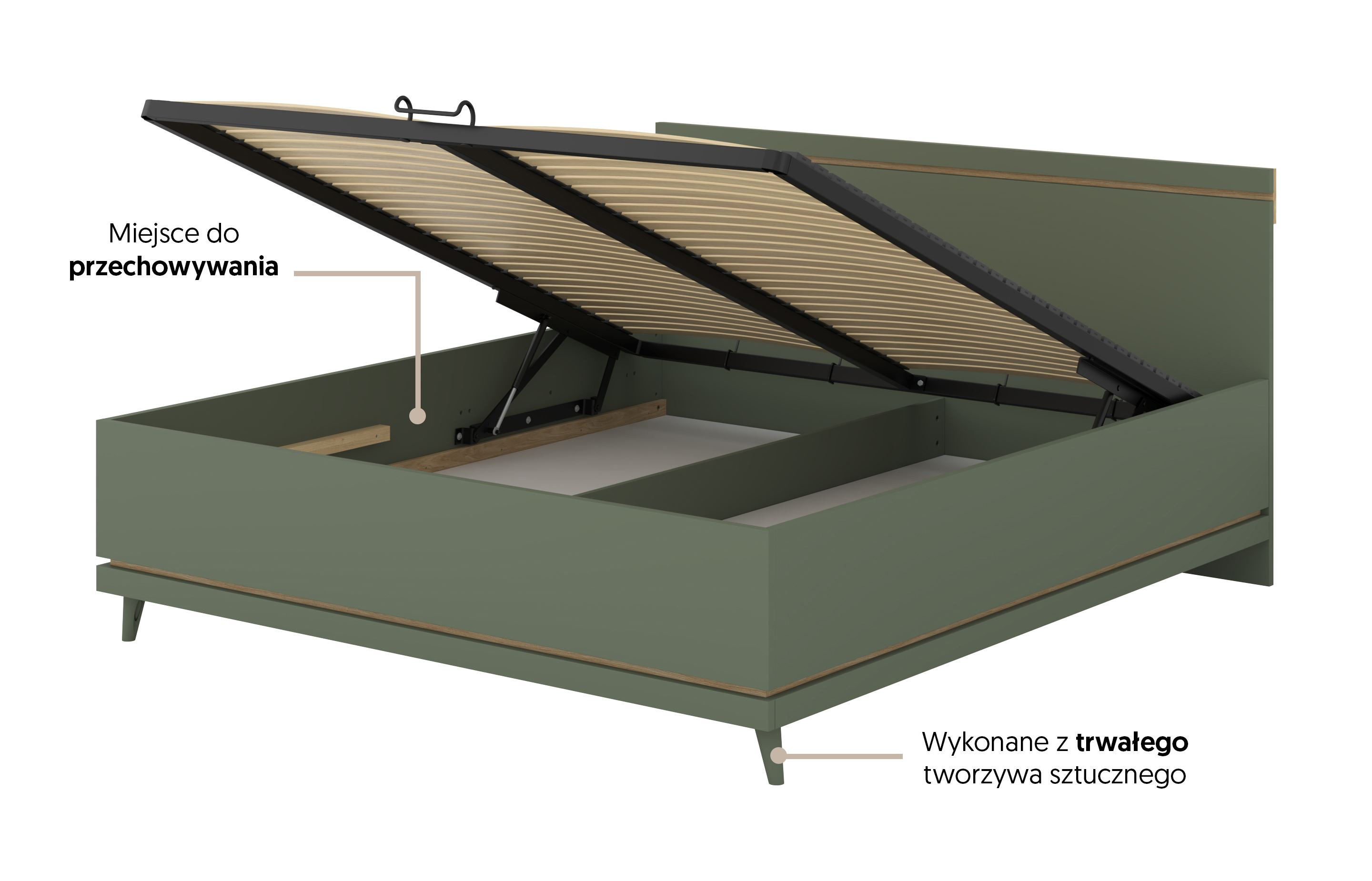 Scandi - Łóżko 180x200 cm ze Stelażem Zgaszona Zieleń Dąb Olejowany