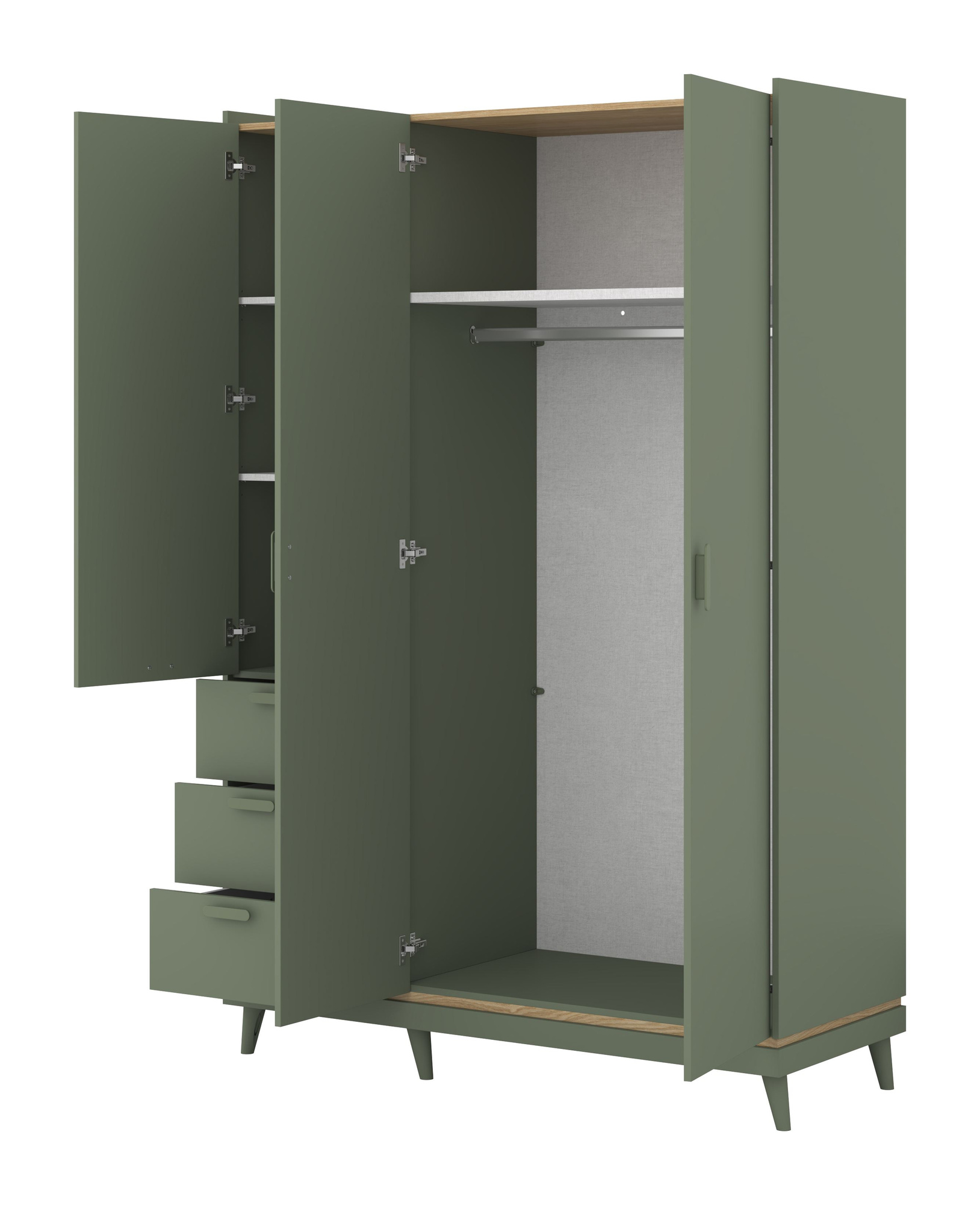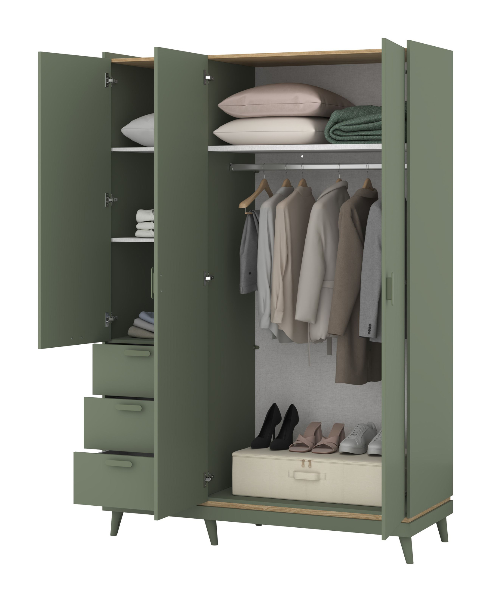 Scandi - Szafa 3D3S Zgaszona Zieleń Dąb Olejowany