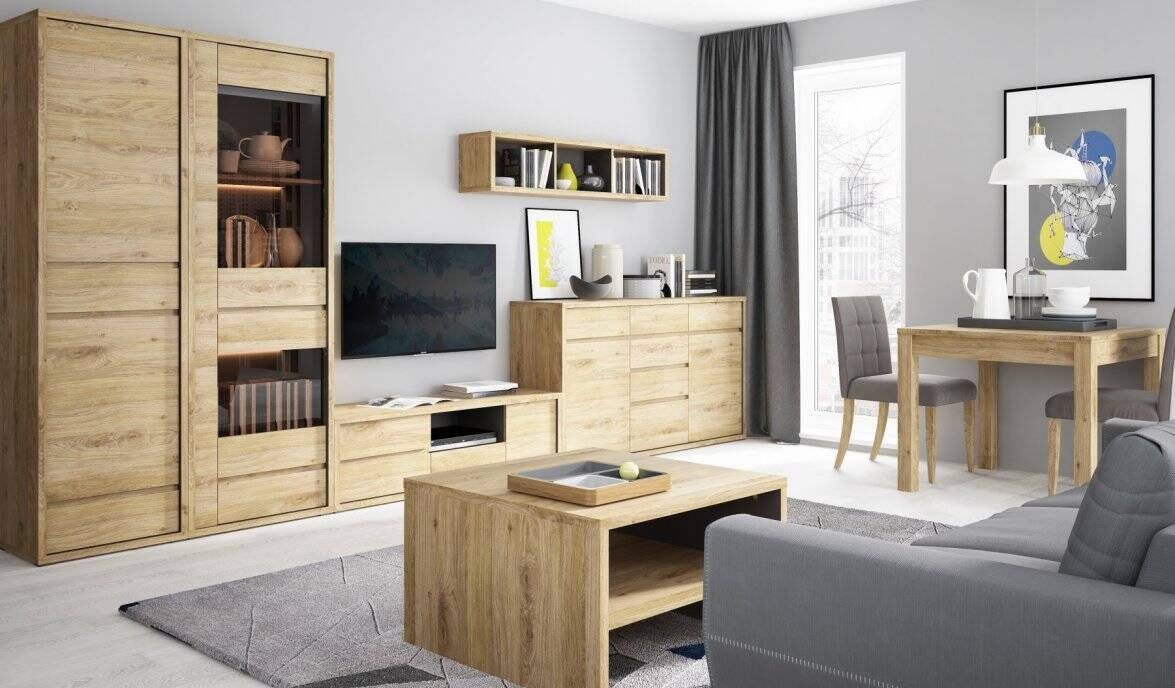 Nowoczesny styl mebla został podkreślony przez poziome usłojenie frontów, które nie tylko są ciekawym detalem wizualnym, ale też są wyrazem dbałości o najmniejsze szczegóły projektu. Urocze wnęki w szarym kolorze zachęcają do eksponowania dekoracyjnych akcentów i ulubionych książek, tworząc przytulną atmosferę w każdym pomieszczeniu.