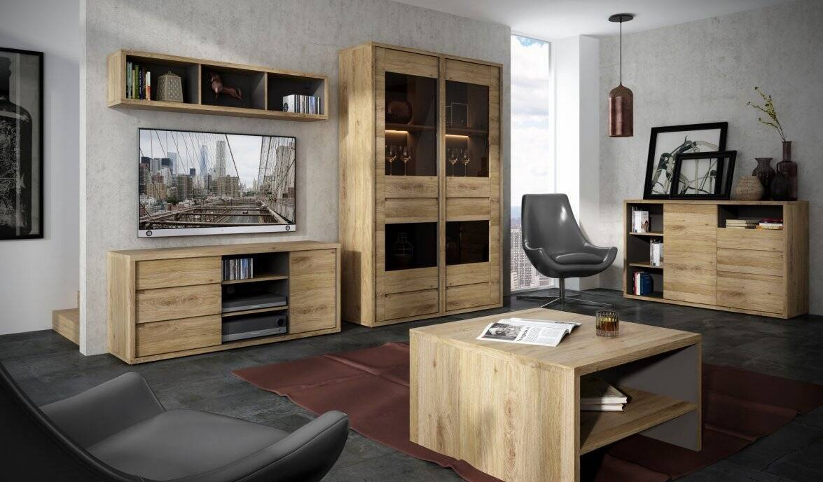 Projektanci mebla Shetland TYP 51 postawili na delikatne poziome usłojenie frontów, które doskonale komponuje się z kontrastującymi odcieniami dębu i szarości. Ten design nie tylko przyciąga wzrok, ale także łatwo wpasowuje się w różnorodne aranżacje salonowe. Mebel ten, wyłącznie dzięki swojej obecności, zmienia przestrzeń wokół siebie, nadając jej charakteru i tworząc przytulną atmosferę dla domowników i gości.