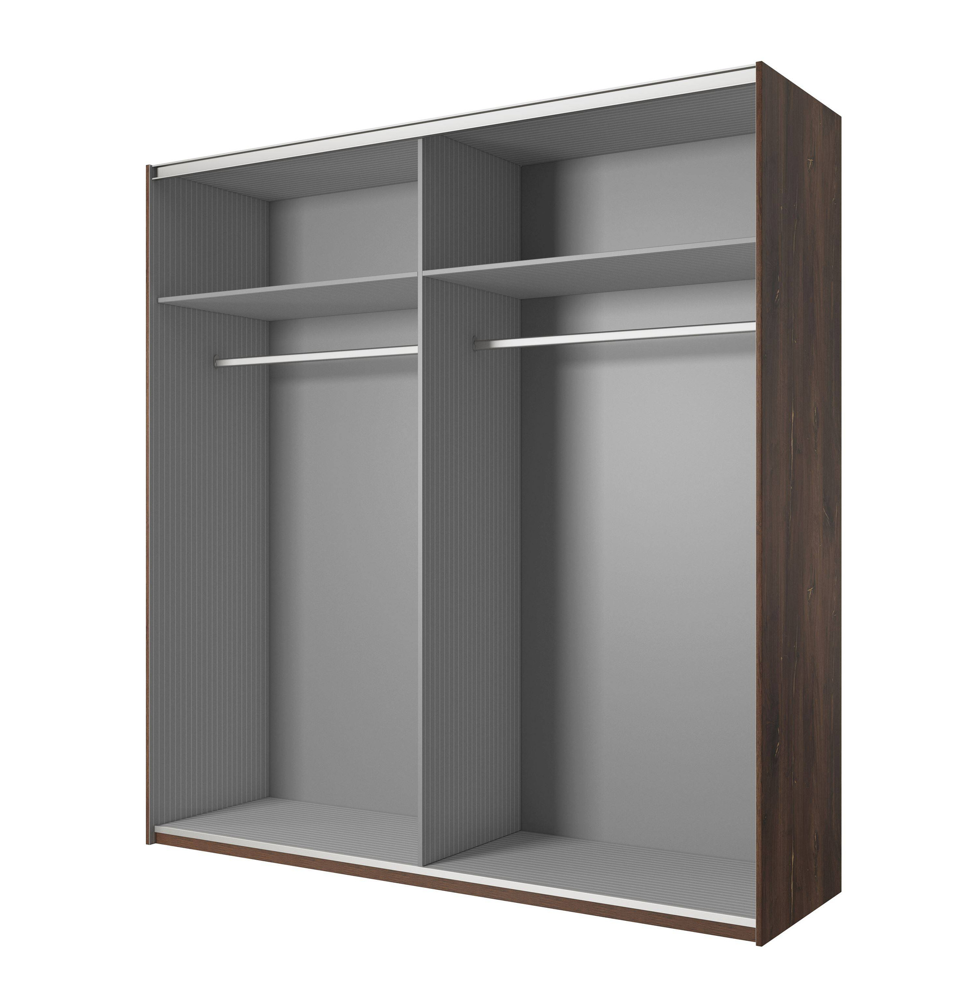 Ta dwudrzwiowa konstrukcja z efektownymi frontami łączącymi klasyczny dąb z nowoczesnym czarnym matem, wyposażona jest w praktyczne drzwi przesuwne z lustrami, które optycznie powiększą każde pomieszczenie i dodadzą mu splendoru. Dzięki dwóm drążkom ubraniowym, rozmieszczonym po jednym z każdej strony, oraz praktycznym półkom nad drążkiem, porządek wśród odzieży stanie się prosty do utrzymania.
