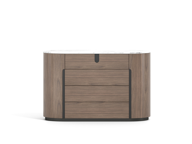 - Nowoczesna komoda Silario SA03 od Livinhill łączy elegancję orzecha włoskiego z minimalistyczną czernią metalowych akcentów. Cztery przestronne szuflady z systemem push-to-open i soft close, oraz marmurowy blat dodają wyjątkowego stylu każdemu wnętrzu.