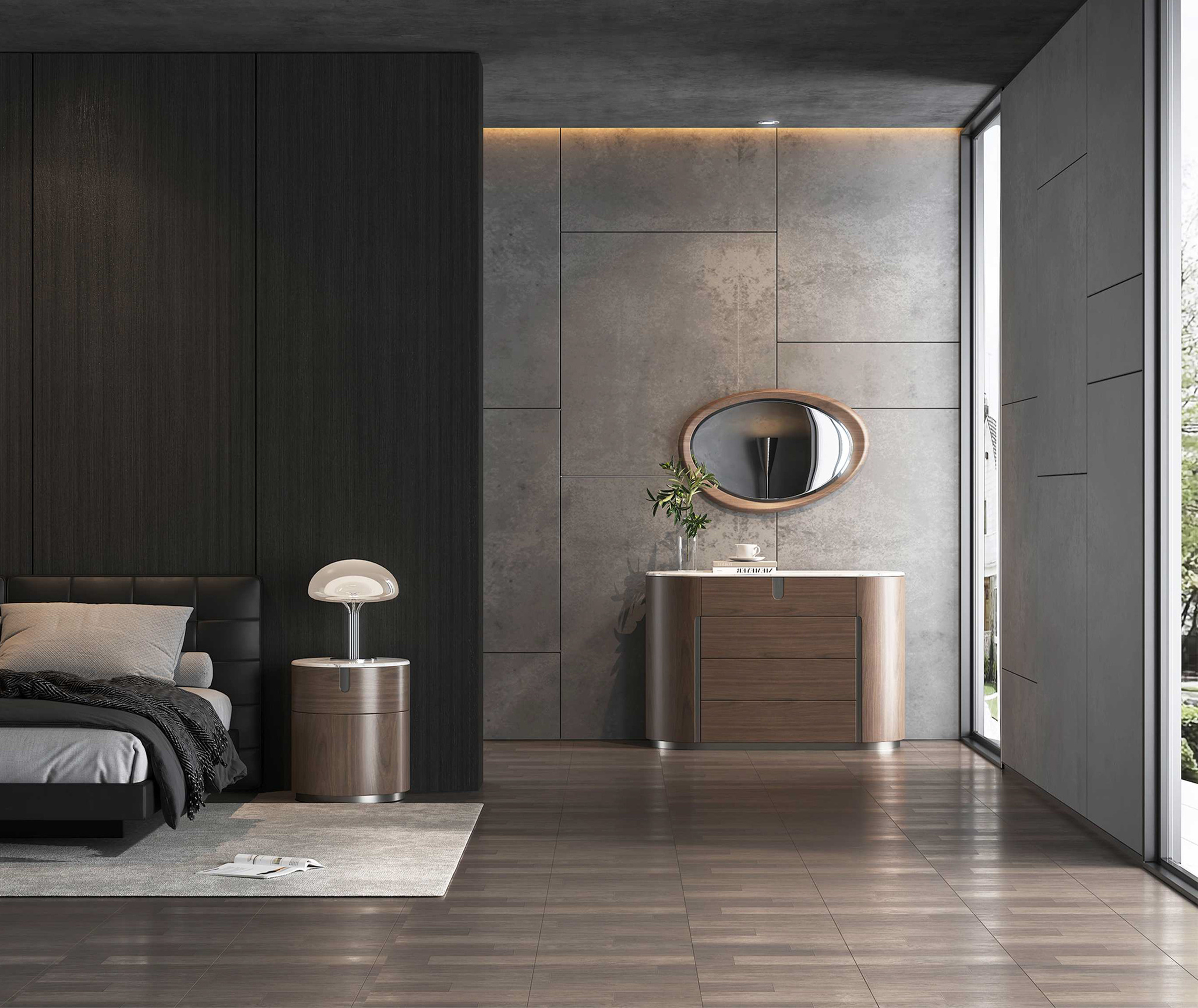 Nowoczesna komoda Silario SA03 od Livinhill łączy elegancję orzecha włoskiego z minimalistyczną czernią metalowych akcentów. Cztery przestronne szuflady z systemem push-to-open i soft close, oraz marmurowy blat dodają wyjątkowego stylu każdemu wnętrzu.
