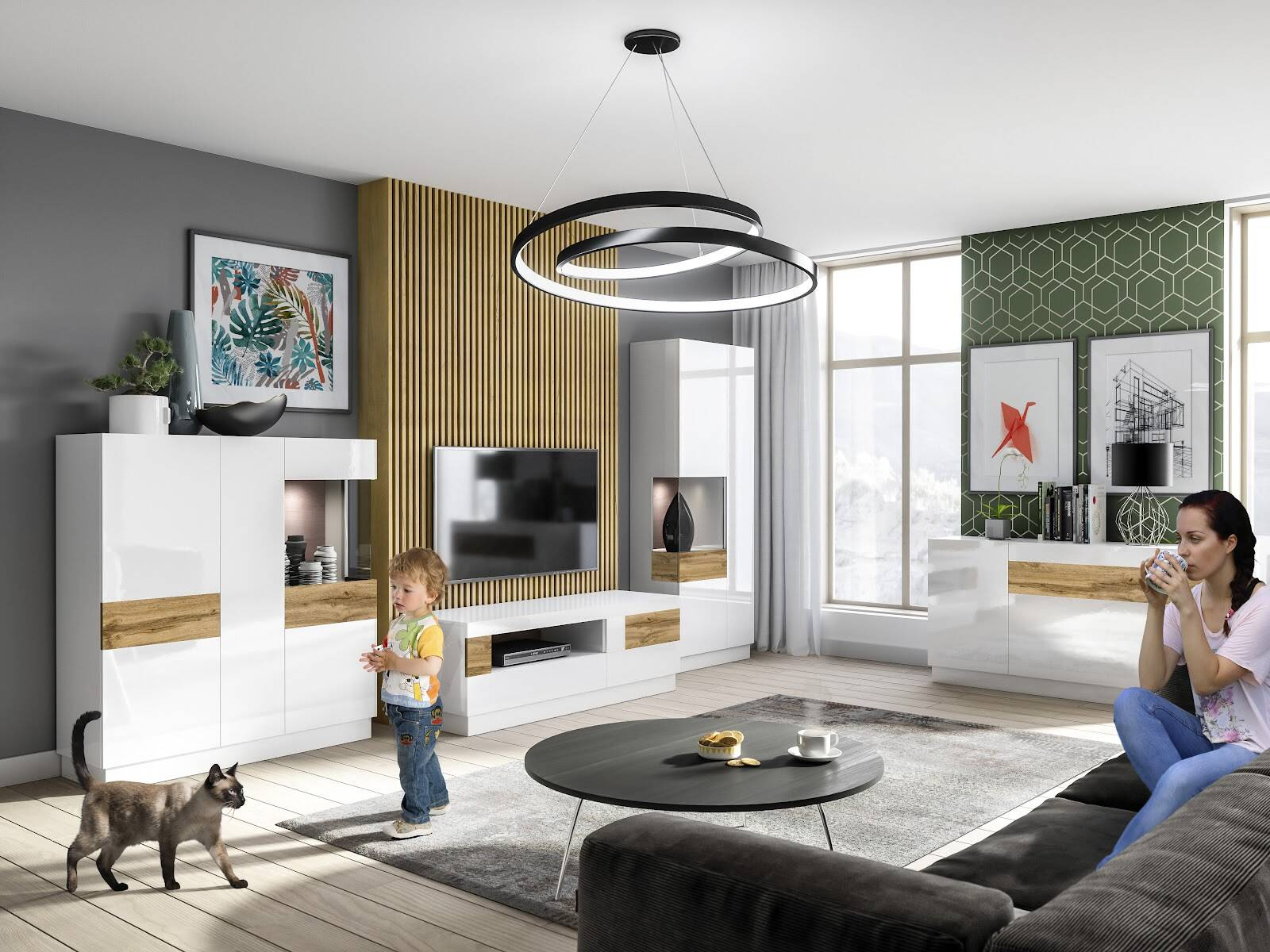 Kolekcja Silke słynie z trzech wyjątkowych wariantów kolorystycznych, a model w kolorach Matera oraz Dąb Wotan wprowadzi do Twojego salonu nutę nowoczesności przełamaną klasycznymi akcentami. Dopełnieniem konstrukcji jest wysokiej jakości folia membranowa aplikowana na frontach, zapewniająca długotrwałość i łatwość utrzymania w czystości.