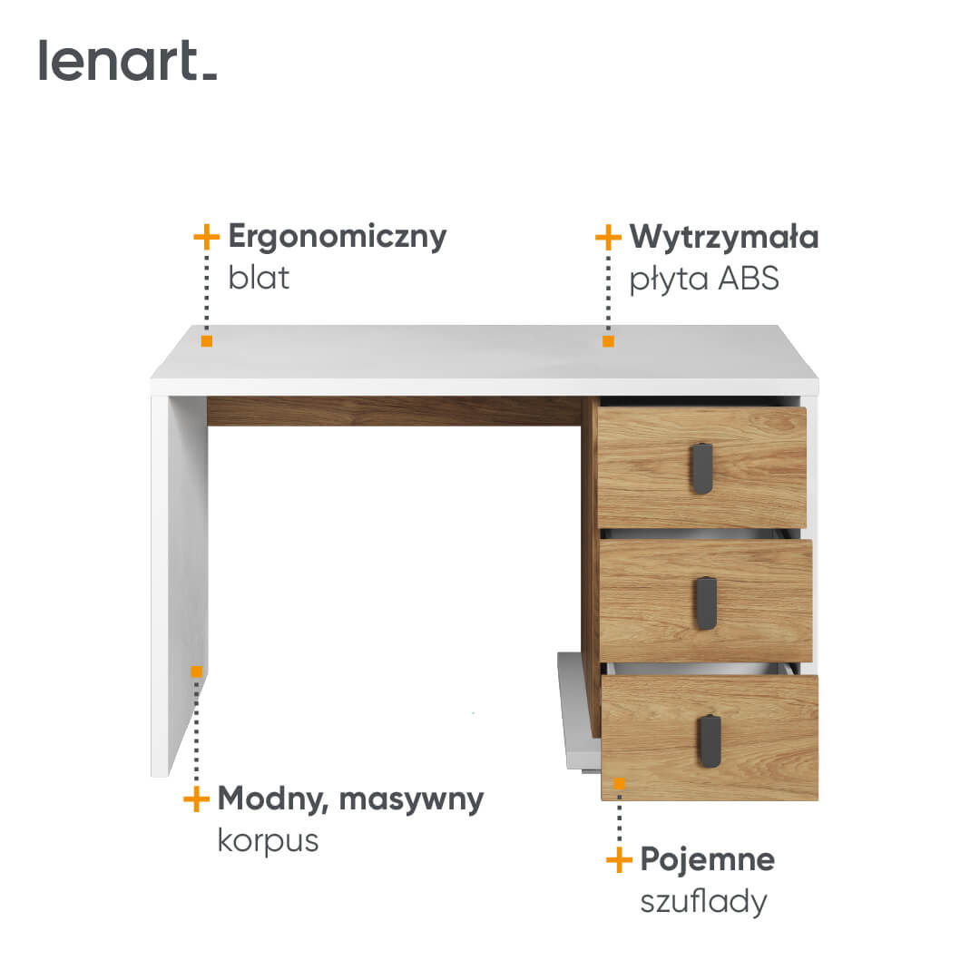SIMI MS-06 - Biurko 3S Białe/Hikora Naturalna
