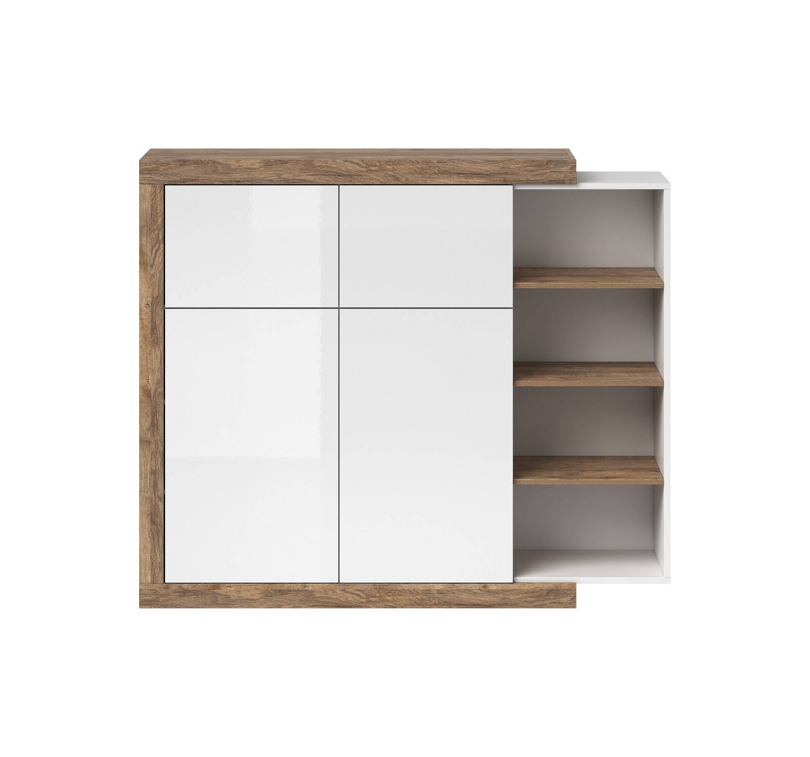 Sintra Wysoka Komoda 4-drzwiowa Biały Połysk / Dąb Samdal