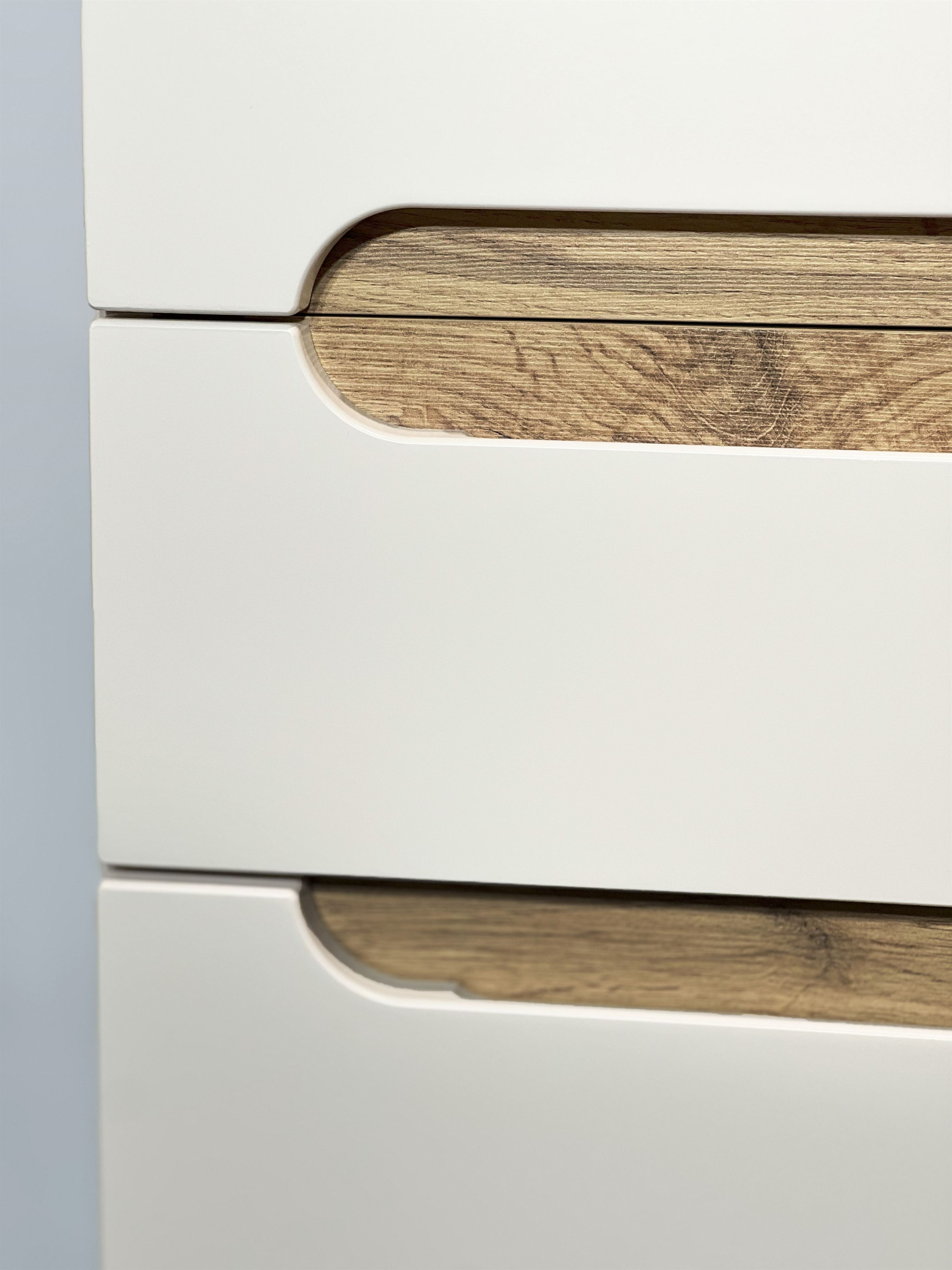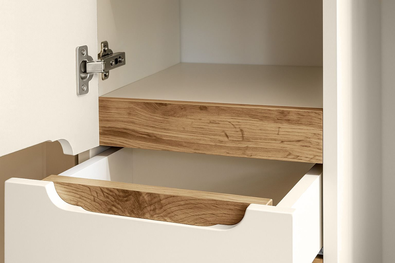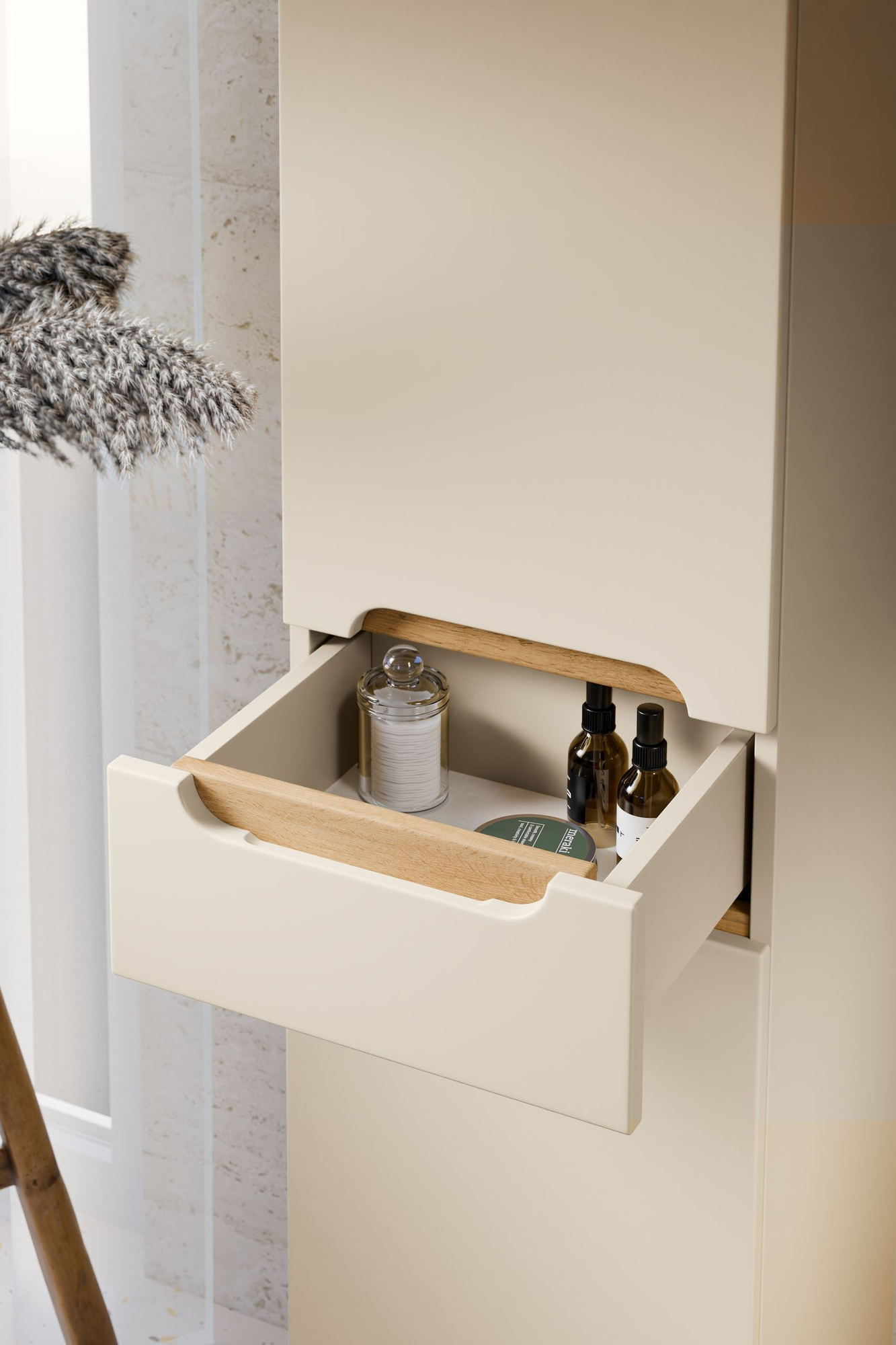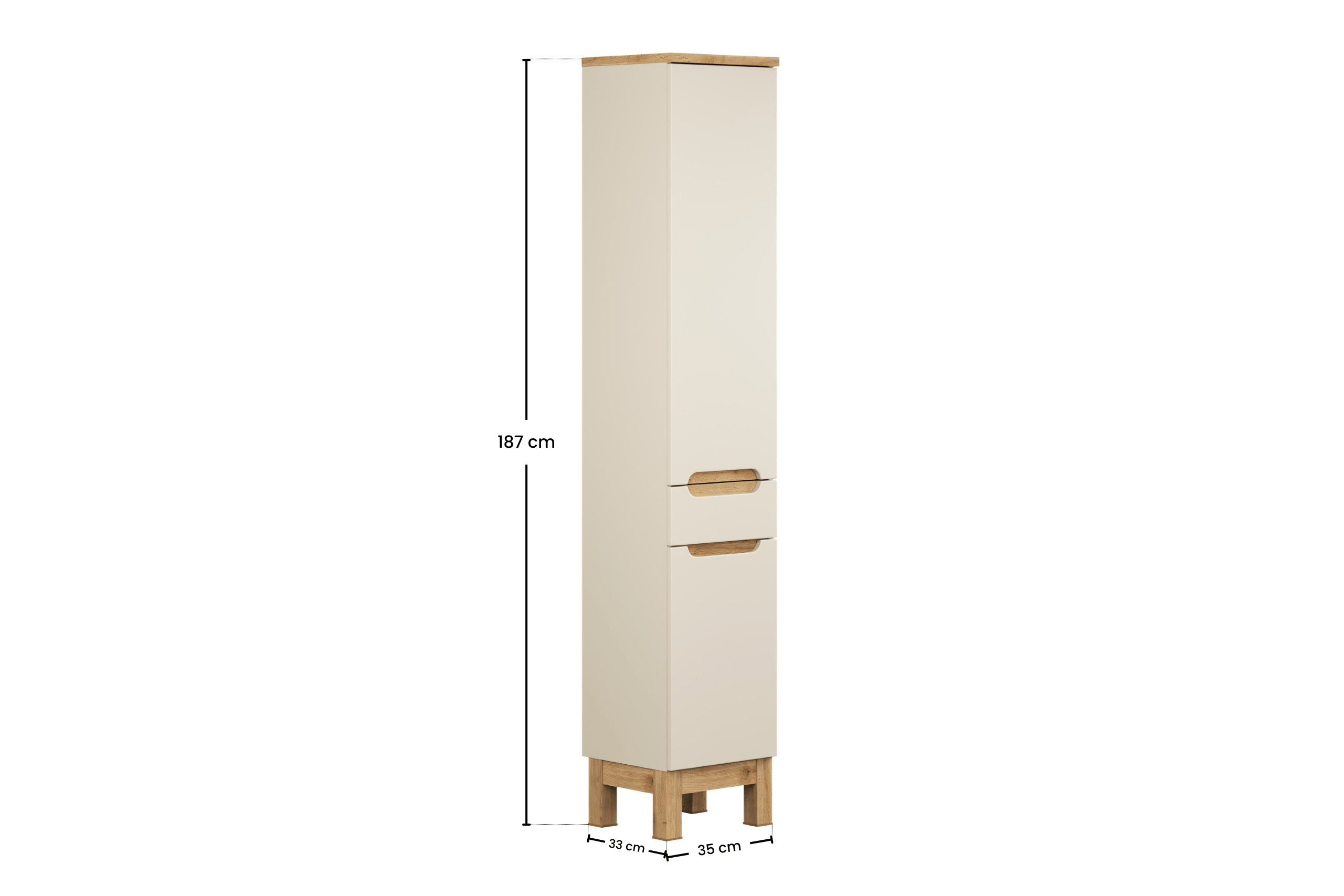 Słupek Wysoki 2D1S Bali Cashmere to elegancki mebel o nowoczesnym stylu, wykonany z płyty MDF w kolorze kaszmiru. Cichy domyk zawiasów oraz frezowane uchwyty dodają mu wyjątkowego charakteru. Idealny do każdej przestrzeni, wolnostojący na nogach.