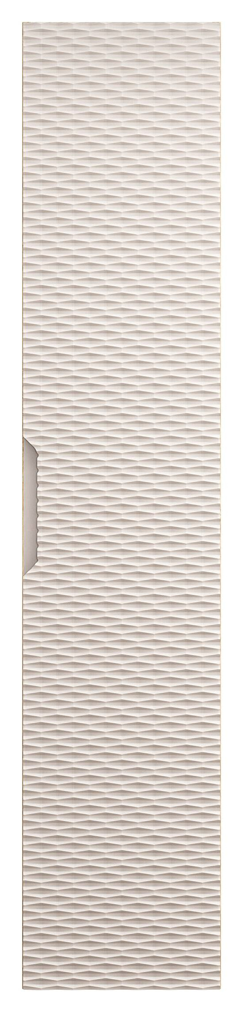 Słupek wyposażony jest w jedne drzwi, które posiadają uniwersalne zawiasy z cichym domykiem, co zapewnia wygodę użytkowania. Zintegrowany uchwyt w kolorze beżu wykonany z płyty MDF to nie tylko praktyczne, ale i estetyczne rozwiązanie.