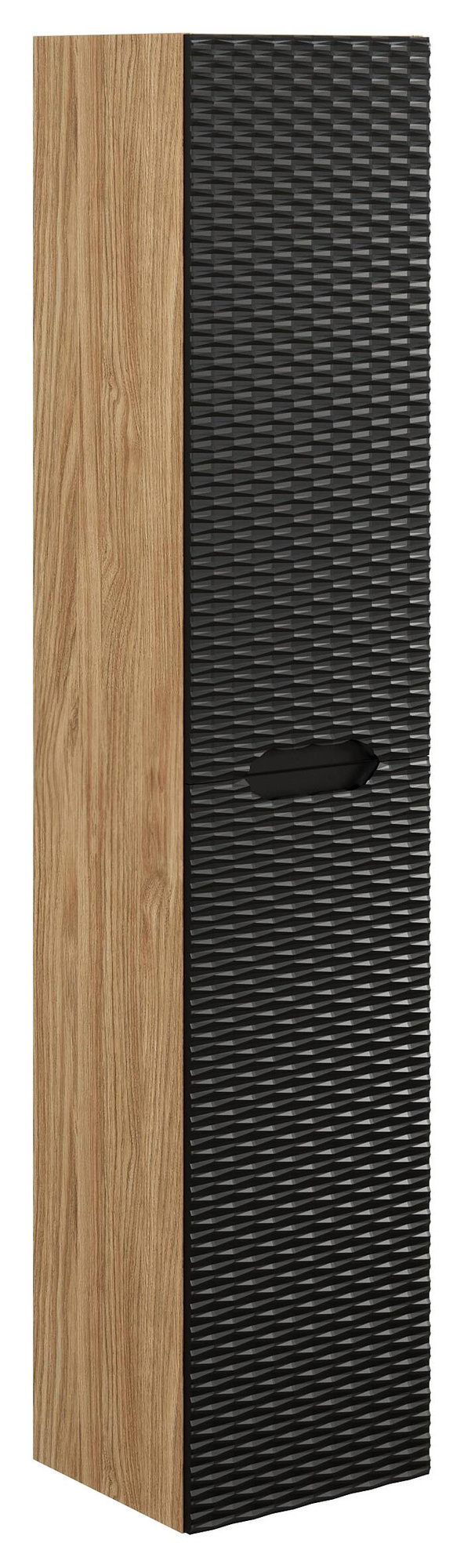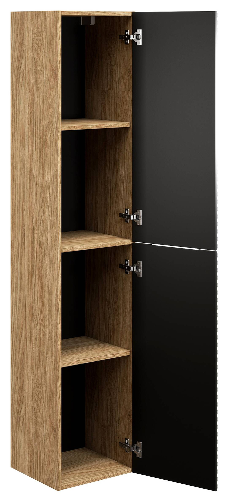 - Elegancka wysoka szafka OCEAN BLACK marki Comad łączy matową czerń z kolorem dębu olejowanego. Wykonana z płyty laminowanej i MDF, oferuje modne frezowane fronty, cichy domyk i 4 półki. Idealna do zawieszenia na ścianie, praktyczna i stylowa.