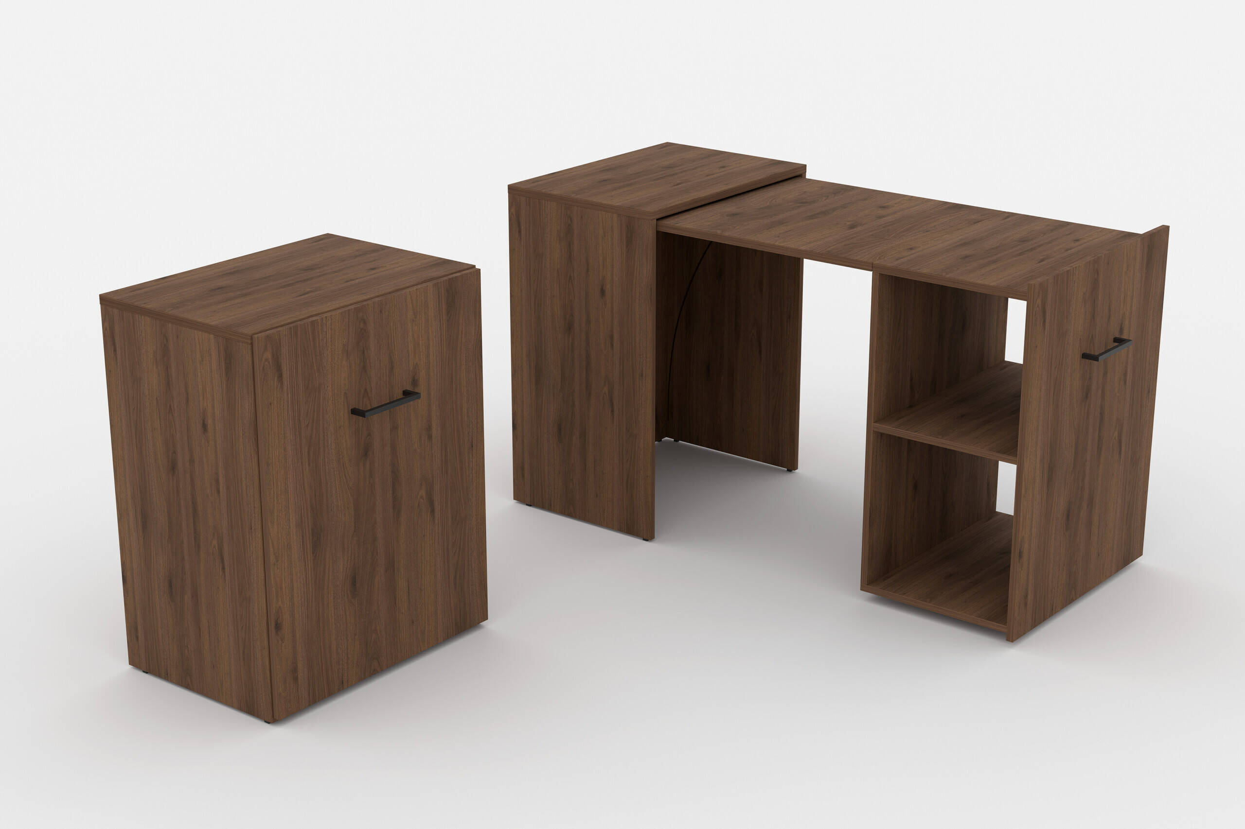 - Biurko "Smart" – rozkładane, w kolorze Orzech Okapi. Wykonane z wytrzymałej płyty laminowanej. Szerokość: 60cm, wysokość: 70cm, głębokość: 41-132cm. Idealne do małych przestrzeni.