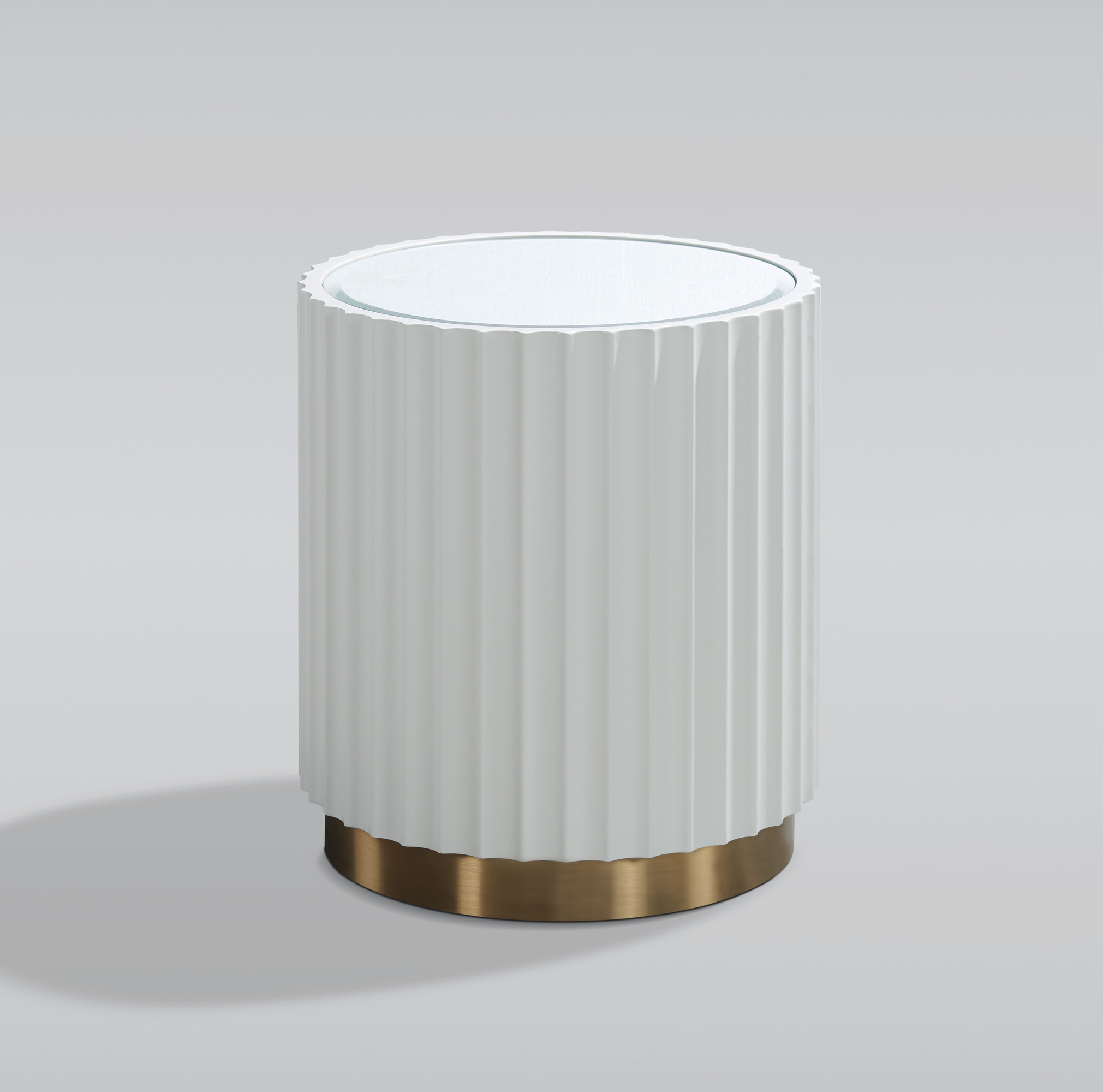 Odkryj elegancję z okrągłym stolikiem Stilig ST708 od Livinhill. Jego złota, szczotkowana podstawa i lustro na blacie idealnie wpasują się w nowoczesne wnętrza. Dzięki ryflowanym detalom i unikalnemu designowi doda oryginalności każdemu pomieszczeniu.
