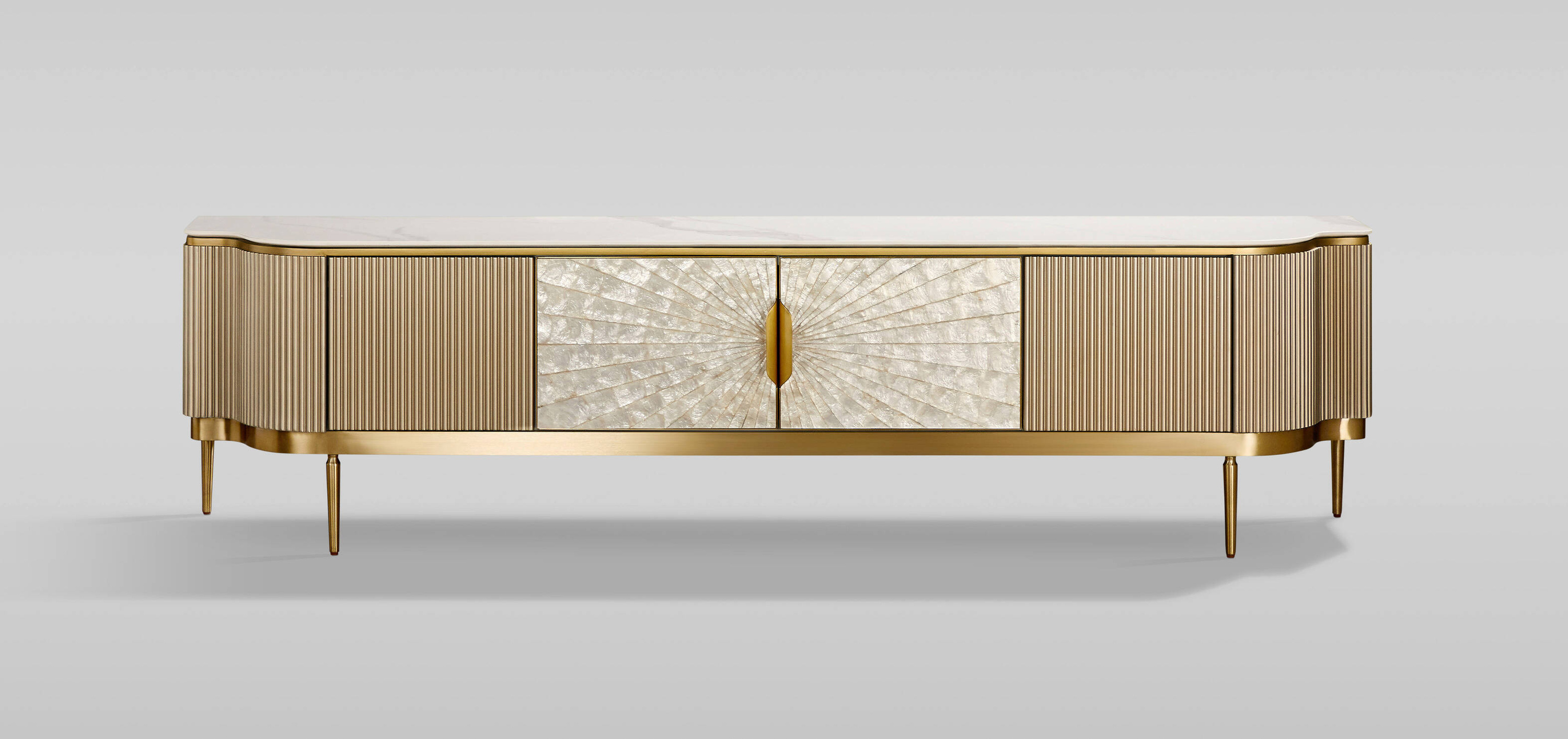MDF, naturalna muszla morska, stal nierdzewna, marmurowy blat