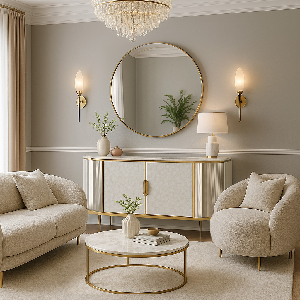 to niezwykle elegancki mebel marki Livinhill, który wprowadzi do każdego wnętrza wyjątkowy styl i harmonię. Jej unikalna kolorystyka – złamana biel z białym blatem – sprawia, że doskonale komponuje się zarówno w nowoczesnych, jak i klasycznych aranżacjach. Złote nogi i akcenty dodają jej luksusowego charakteru, tworząc zharmonizowaną całość, która przyciąga wzrok i zachwyca gości.