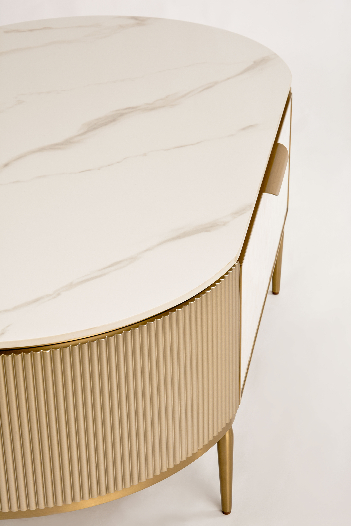- Kolor:Szampańskie złoto, złote nogi i akcenty, jasnokremowy front, biały marmurowy blat