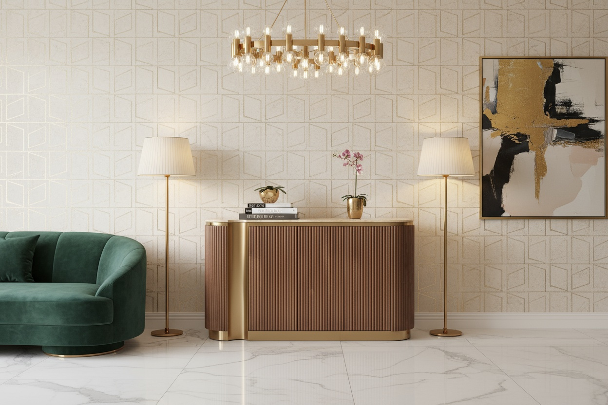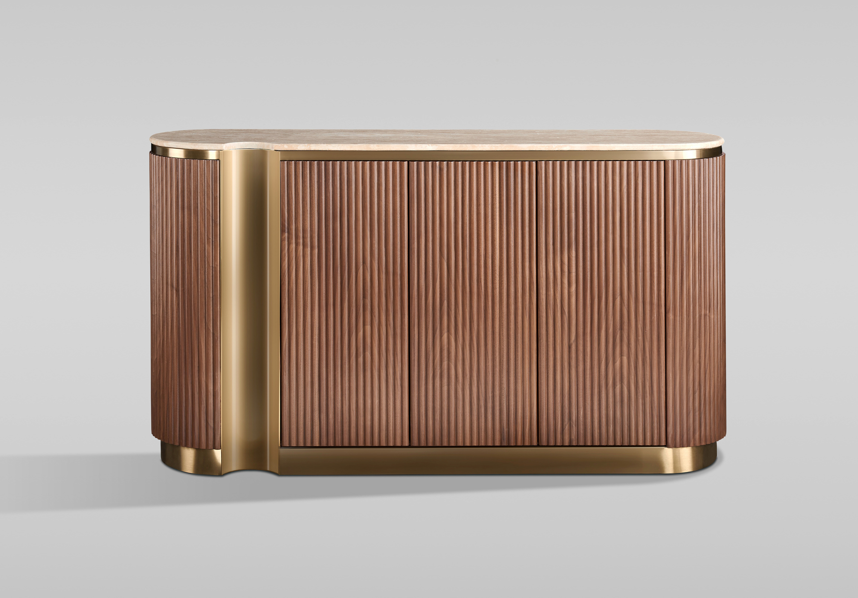 Stilig ST917D to elegancka komoda od Livinhill, łącząca orzechowe wykończenie z luksusowymi złotymi akcentami. Naturalny blat z trawertynu oraz ryflowane detale dodają charakteru. System push to open i soft close zapewniają wygodę użytkowania. Idealna do