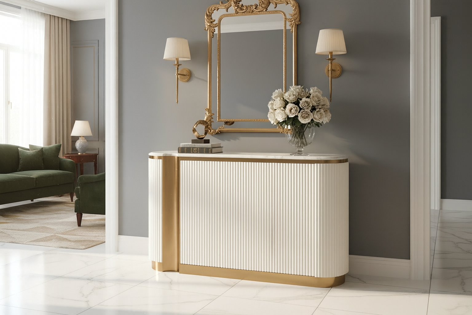 Odkryj wyjątkowy styl i elegancję z komodą Stilig ST917F marki Livinhill, która stanie się nie tylko meblem, ale także centralnym punktem Twojego wnętrza. Dzięki swojej uniwersalnej kolorystyce w odcieniu białego ecru i eleganckim złotym akcentom, komoda wkomponuje się w różne aranżacje, dodając im odrobinę luksusu i szyku. Jej starannie wykonany korpus z ryflowanego drewna w efektowny sposób łączy klasykę z nowoczesnością, tworząc harmonijną całość, która zachwyci każdego gościa.