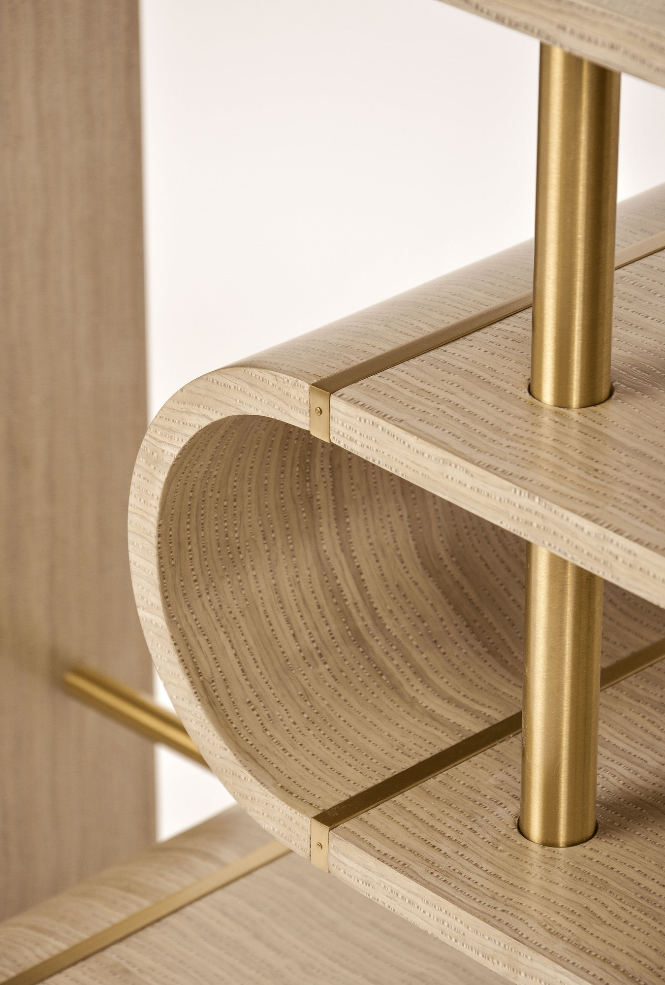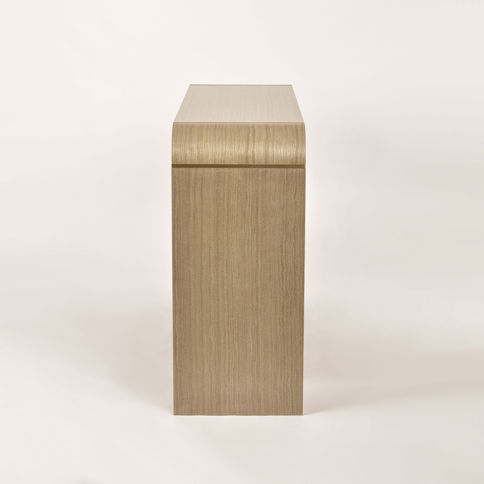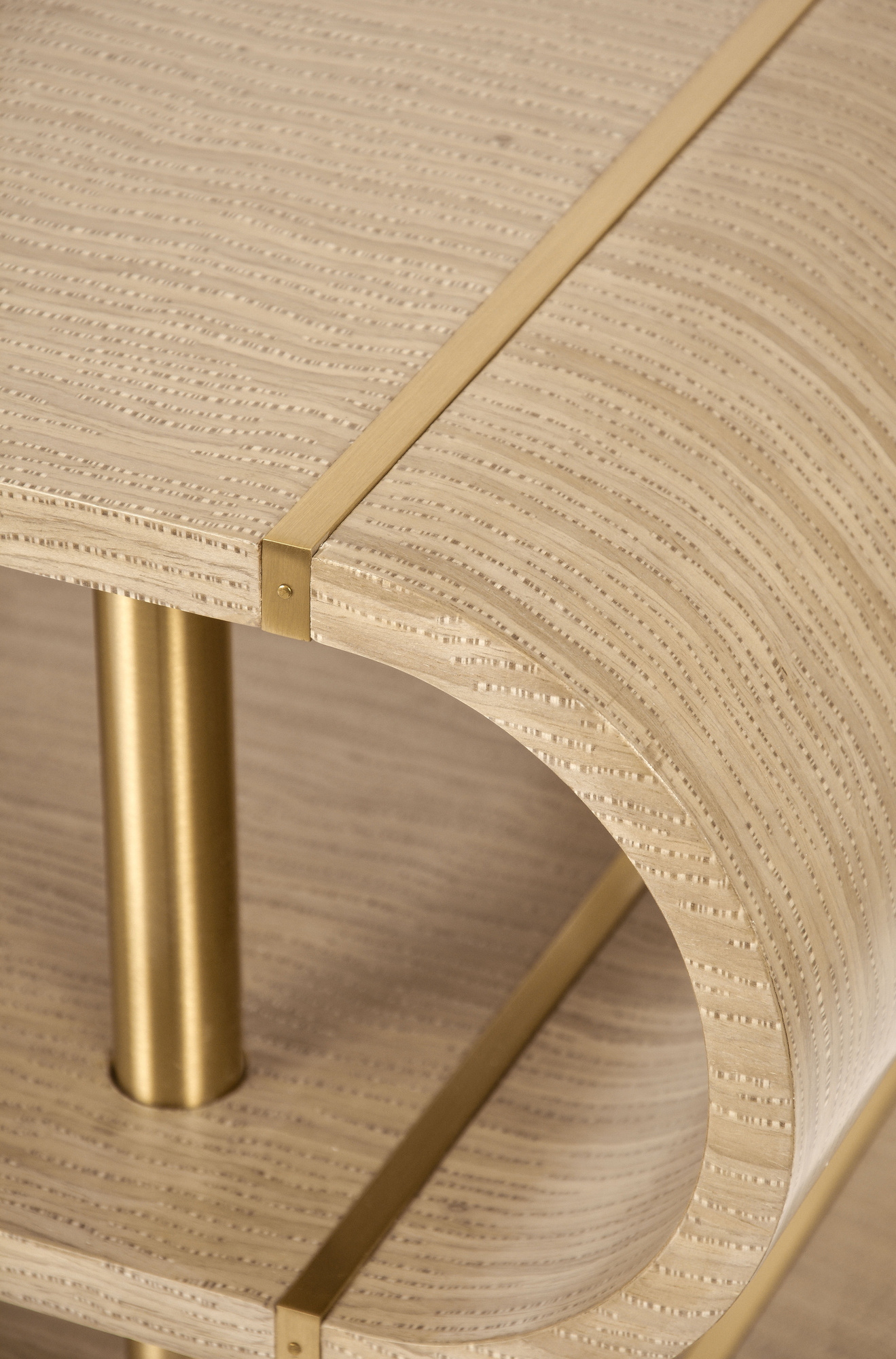 Konsolę charakteryzuje nietuzinkowy sinusoidalny kształt półek, który nadaje jej wyjątkowo oryginalnego charakteru.