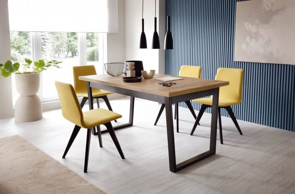 Wykonany z wysokiej jakości płyty laminowanej, stół cechuje się wytrzymałością i łatwością w utrzymaniu czystości – współczesna technologia przyjazna tradycyjnemu wyglądowi. Blat oraz elementy oskrzyni wykonane z tej samej płyty świetnie kontrastują z metalowymi nogami, oferując stabilność i solidność, na których z pewnością można polegać przez lata.