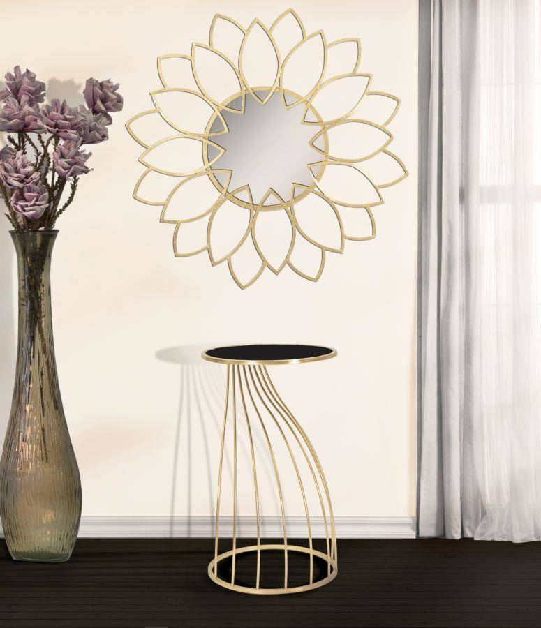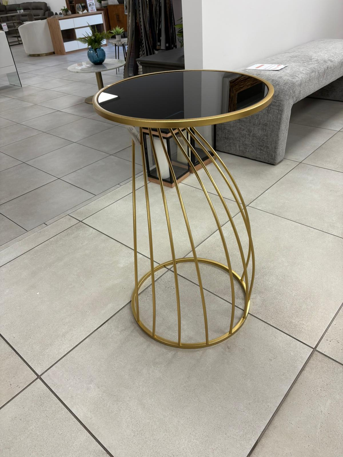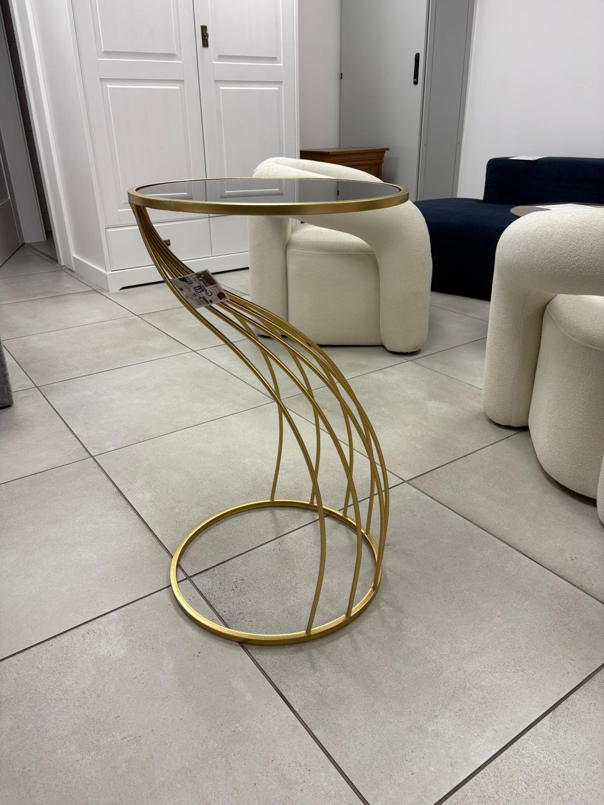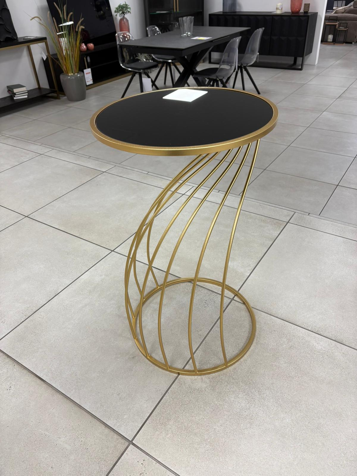 - Stolik wykonany z metalu i szkła o falistych i urzekających liniach. Złoto w połączeniu z czernią tworzy silny efekt. Luksusowy element glamour dla Twojego domu