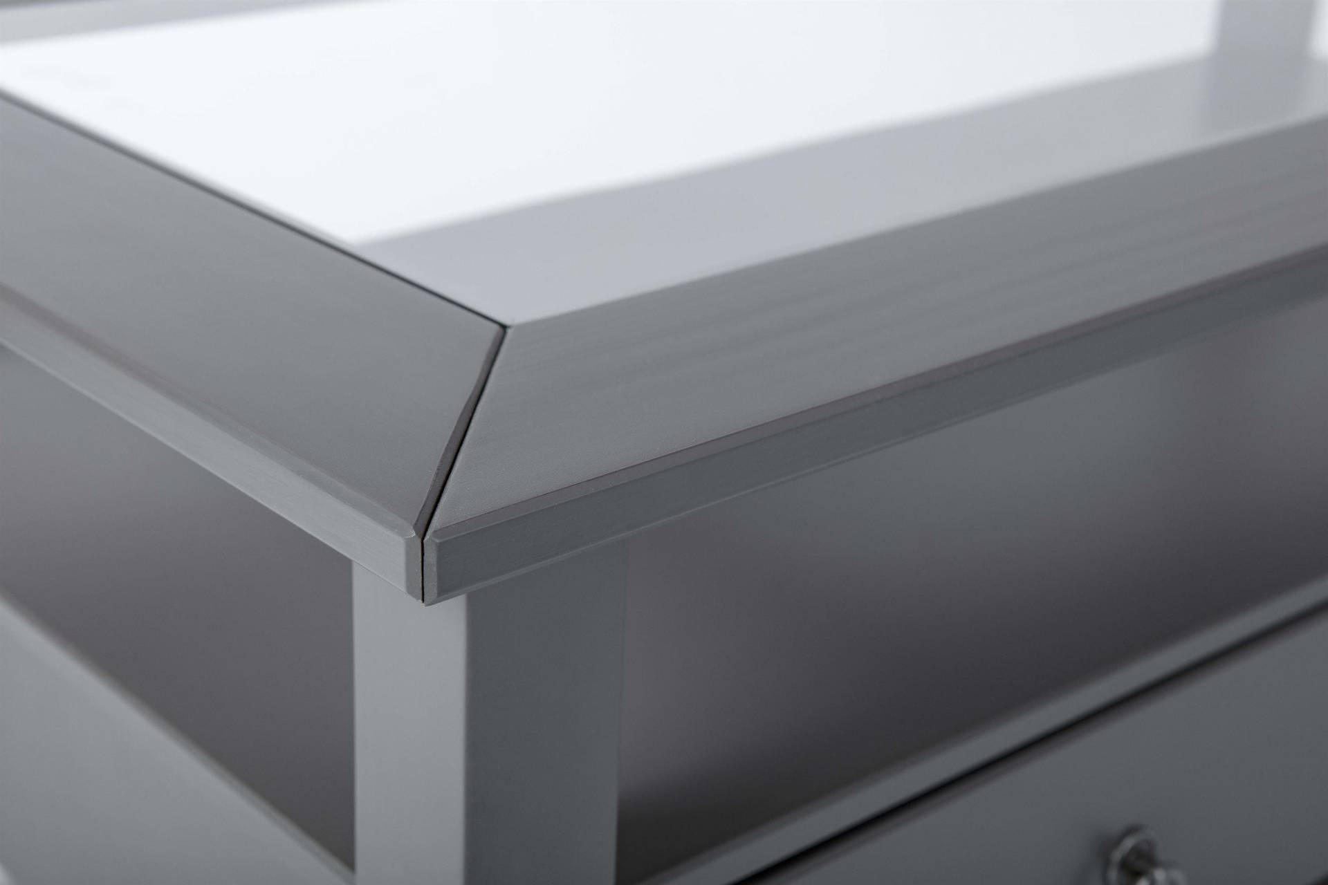 - Dzięki szufladzie ten drewniany stół oferuje dodatkowe miejsce do przechowywania. Ponieważ blat stołu wykonany jest z bezpiecznego szkła, można pod nim umieścić stylowe dekoracje.