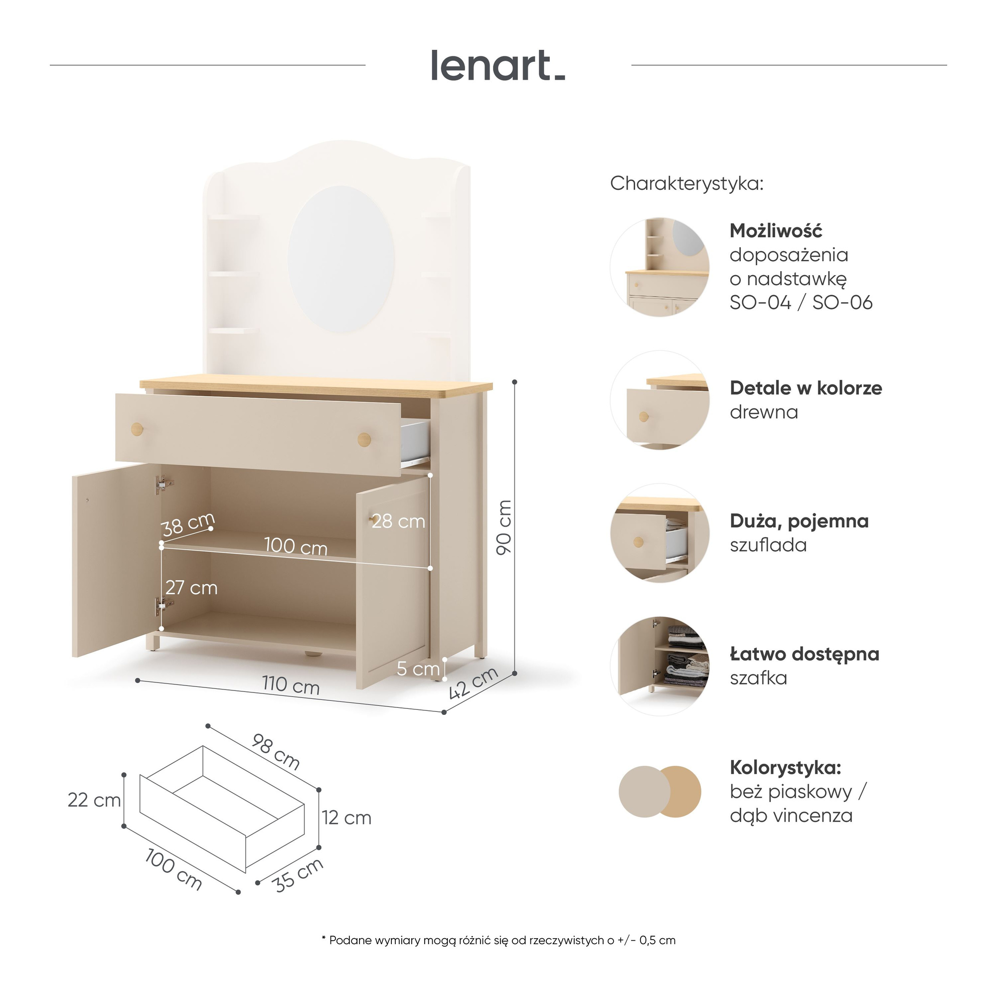 - Komoda STORY SO-05 łączy elegancję i funkcjonalność w beżowym odcieniuPiaskowego Dębu Vincenza Bielonego. Z dwiema drzwiami i jedną szufladą oferuje przestronny magazyn, a jej laminowany materiał zapewnia trwałość. Idealna do każdego wnętrza!