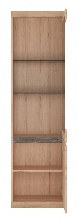 Sercem tej witryny jest przeszklenie wykonane z hartowanego szkła, które nie tylko wizualnie powiększa przestrzeń i pozwala eksponować zawartość, ale także zapewnia zwiększone bezpieczeństwo użytkowania. Możesz w niej prezentować swoje ulubione zbiory książek, kolekcje figurek, czy zastawę, którą chcesz mieć na wyciągnięcie ręki, a jednocześnie w bezpiecznym miejscu.