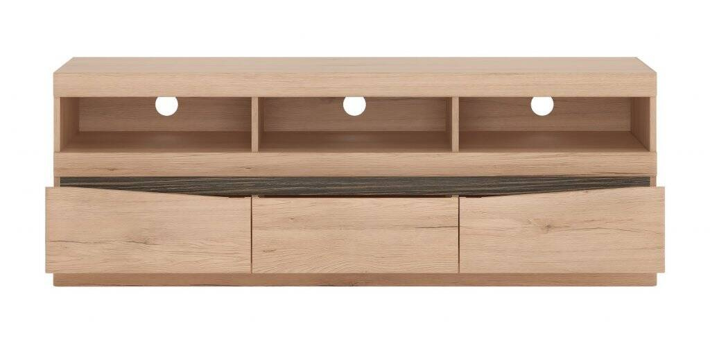 Myśląc o detalach, producent zaopatrzył komodę w trzy otwory wentylacyjne, które gwarantują właściwą cyrkulację powietrza, chroniąc tym samym sprzęt RTV przed przegrzaniem. Rozwiązanie to pomaga również w utrzymaniu porządku w kablach, dzięki czemu Twoje multimedia będą funkcjonować w zorganizowanym i estetycznym środowisku.