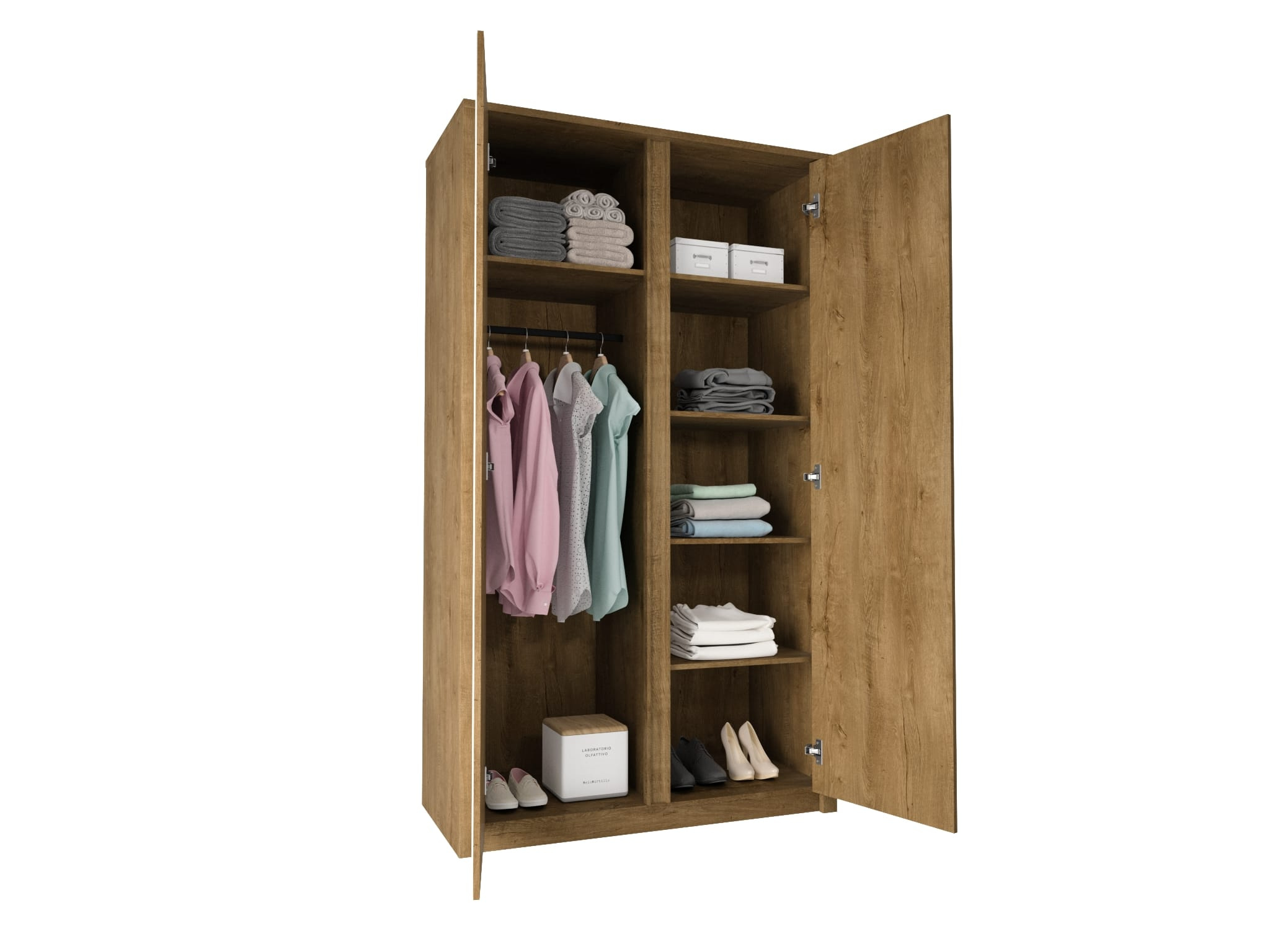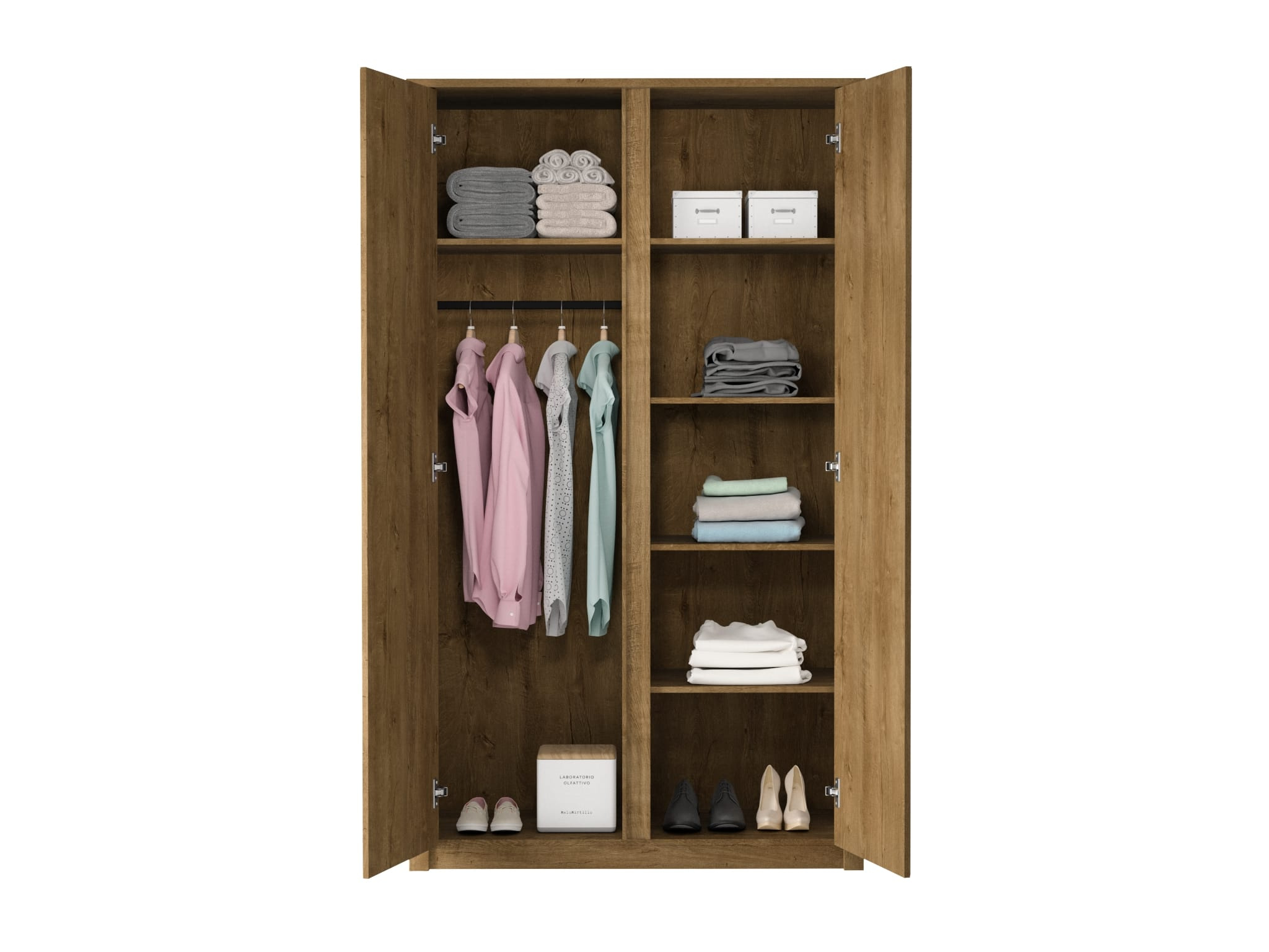 - Dwudrzwiowa szafa Maxim wykonana z płyty laminowanej w kolorze dąb lefkas. Posiada wbudowane lustro i drążek na ubrania. Idealna do aranżacji sypialni lub przedpokoju, oferuje stylowy design i funkcjonalność. Samodzielny montaż zapewnia łatwość instalacji