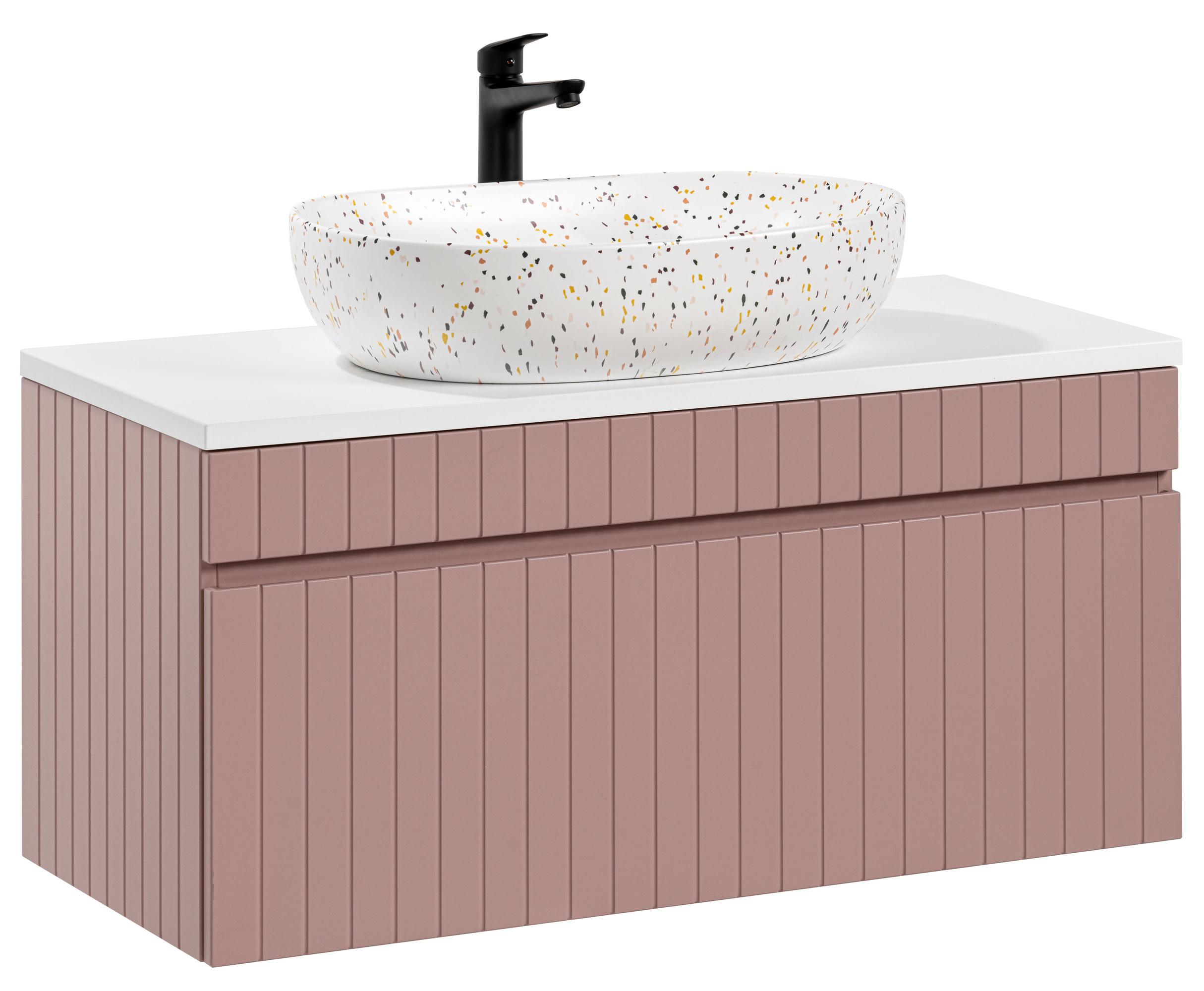 - Zestaw składa się z:Umywalka nablatowa ceramiczna LILI MW21 Matowe Lastryko 60 cm ( 60 | 41,5 | 13,5 ), Blat Łazienkowy 100 cm ICONIC WHITE ( 100,4 | 46 | 2,5 ), Szafka pod umywalkę 100 cm ICONIC ROSE ( 100 | 45,8 | 46 )